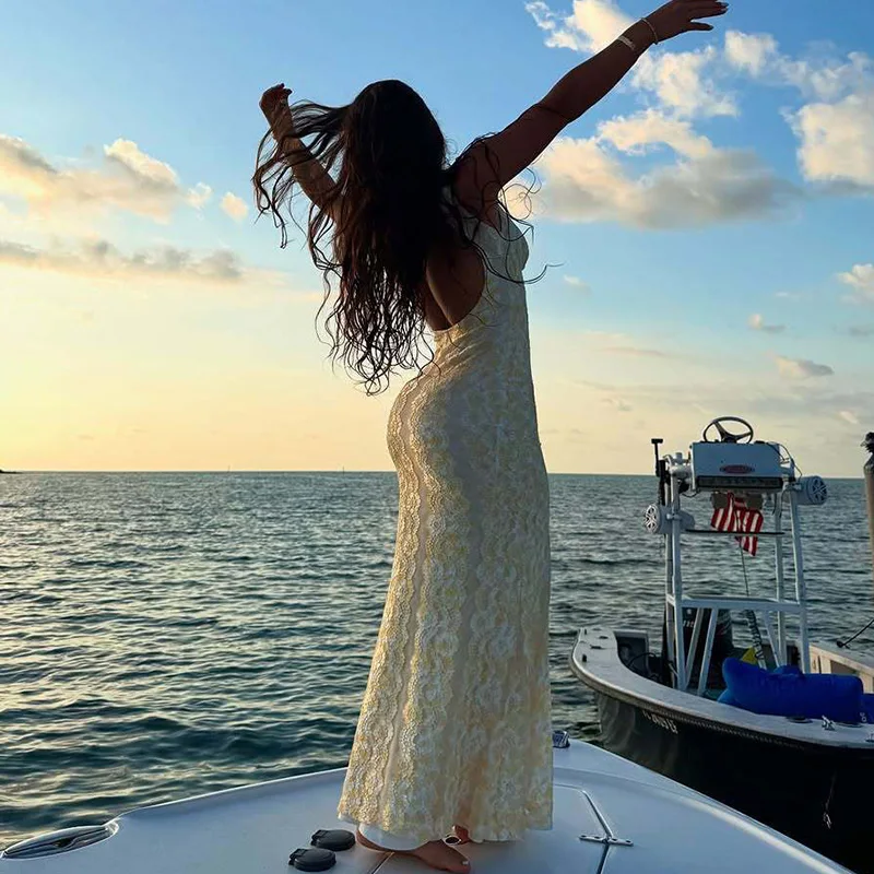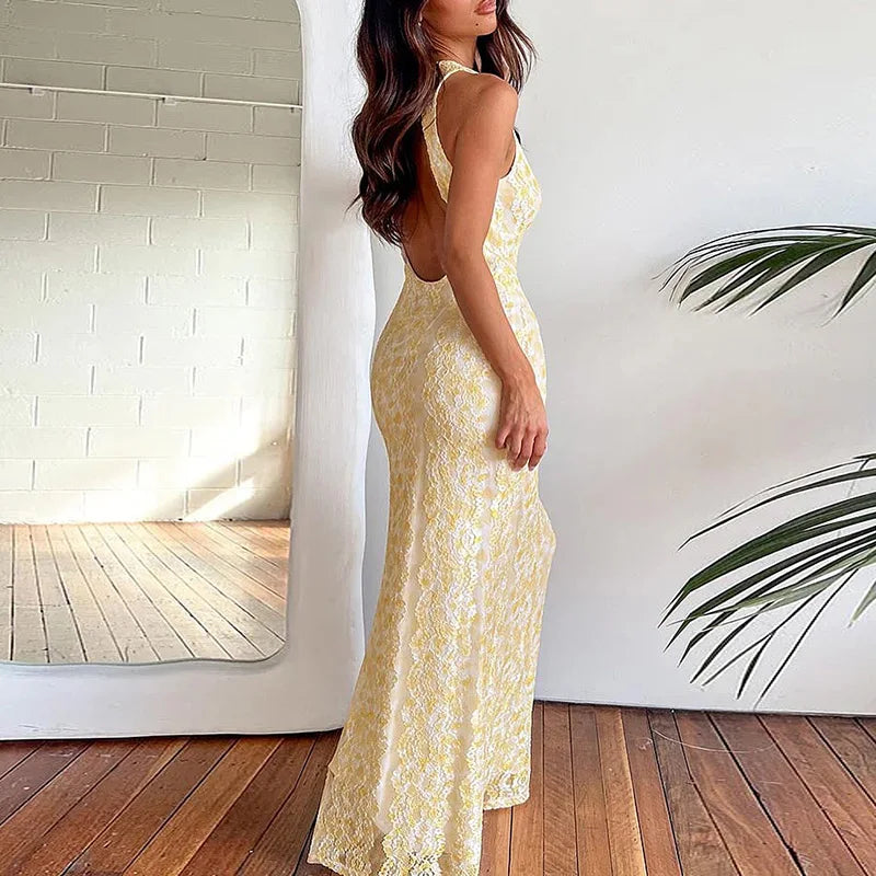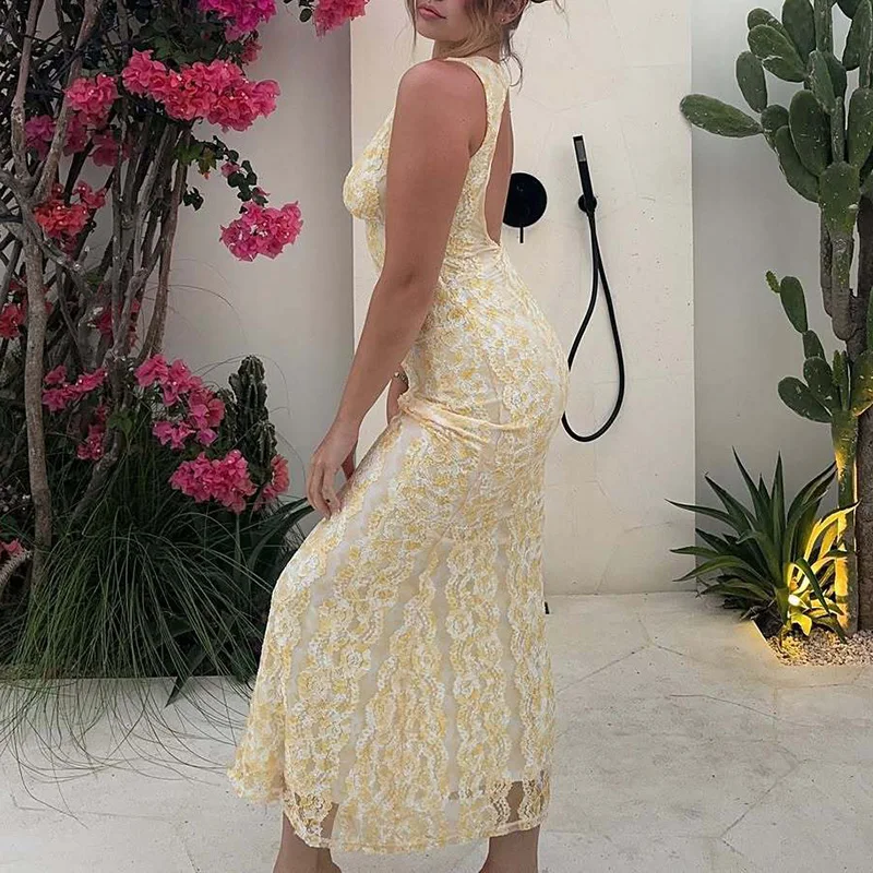 ADVBRIDGE - Elegant Solid Party Dress Luxury Sleeveless Deep V Suspender Evening Dress Temperament High Waist Lace Embroidery Bodycon Dress