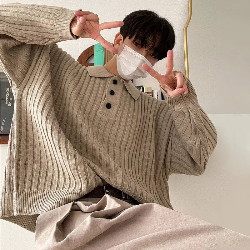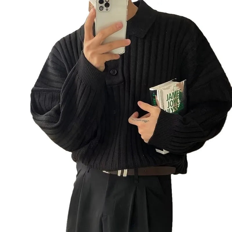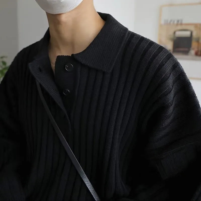 Advbridge Fall Men's Luxury Polo Neck Knit Pullover Sweater Casual Korean Button-down Solid Color Long Sleeve Loose Popular Knitwear M-2XL
