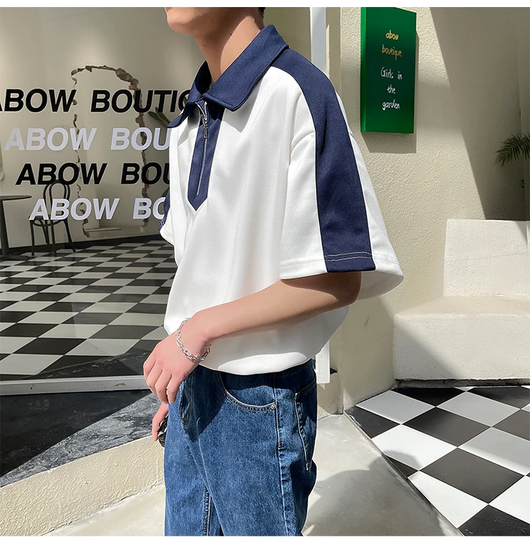 Advbridge Fashion Print Contrast Color Men Polo Shirts Fashionable Crew Neck T Shirts Loose Polo Shirt Cool Breathable Man Top E215
