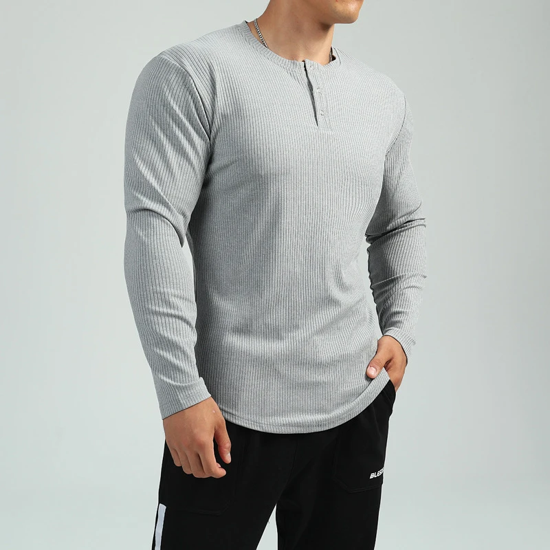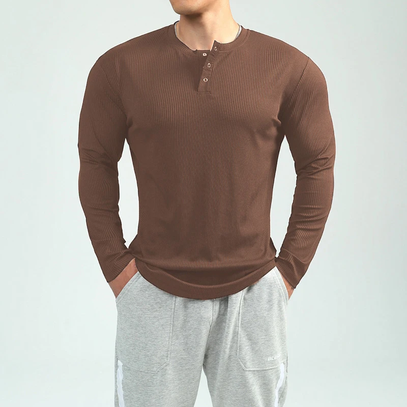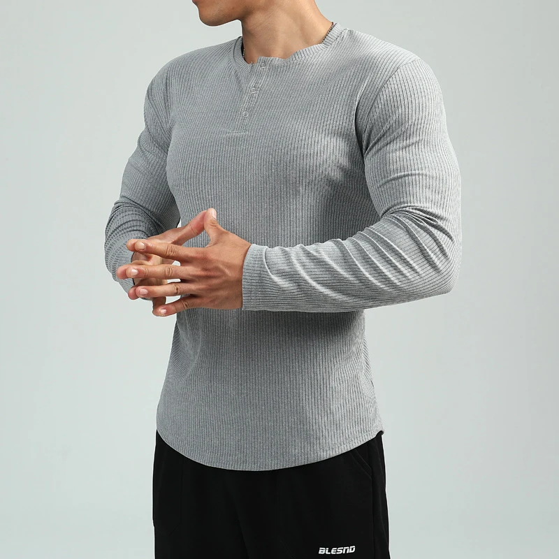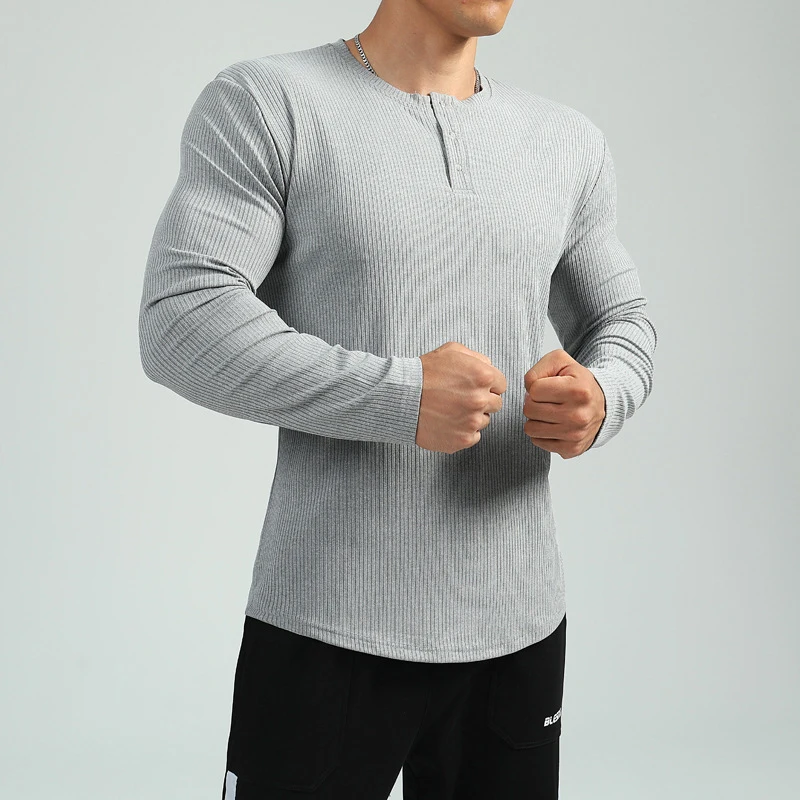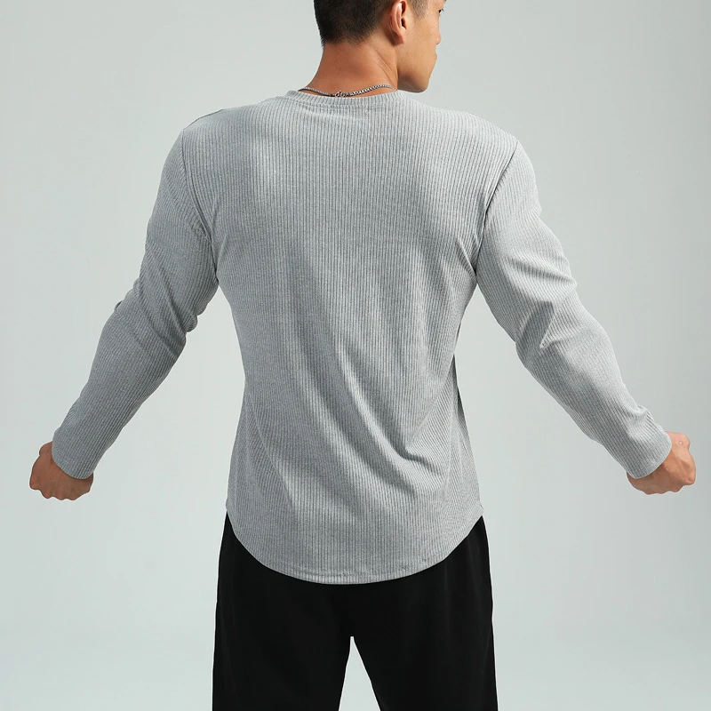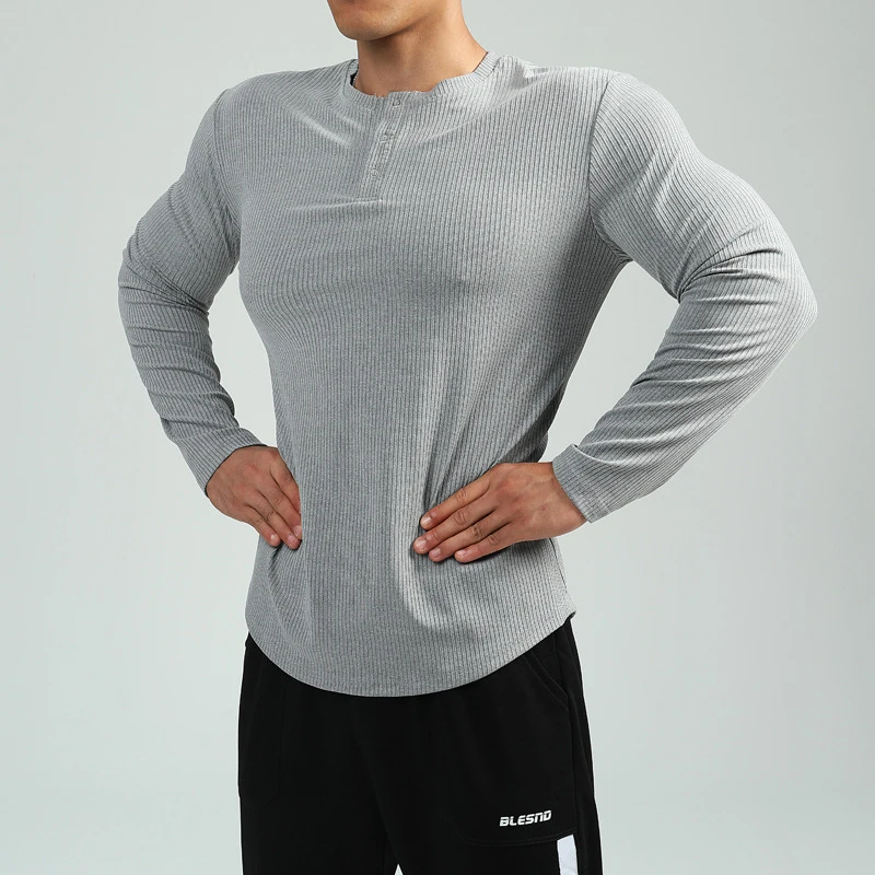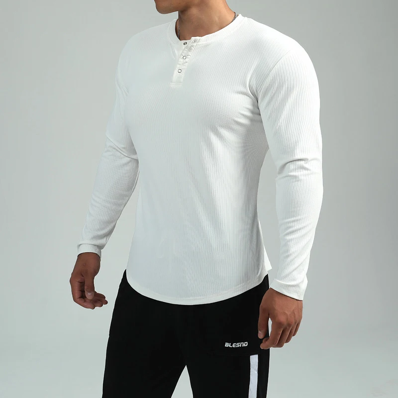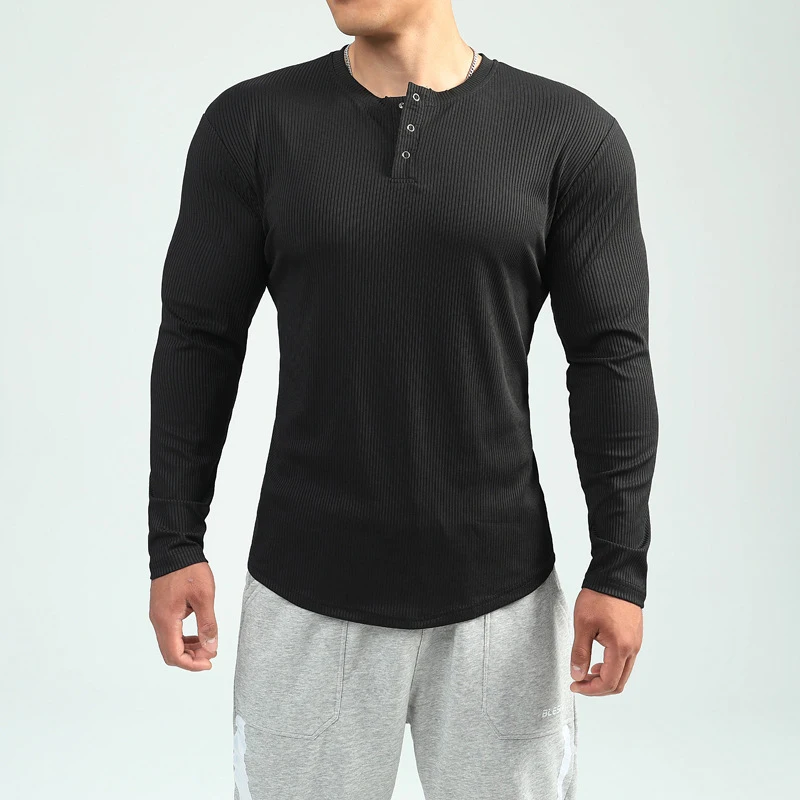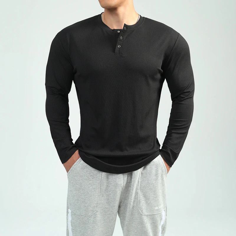 ADVBRIDGE Fashion Quick Dry Long Sleeve Pullover t Shirt Man Casual Sports Men Basic Tops Solid Crew Neck Button Training Shirts Tee