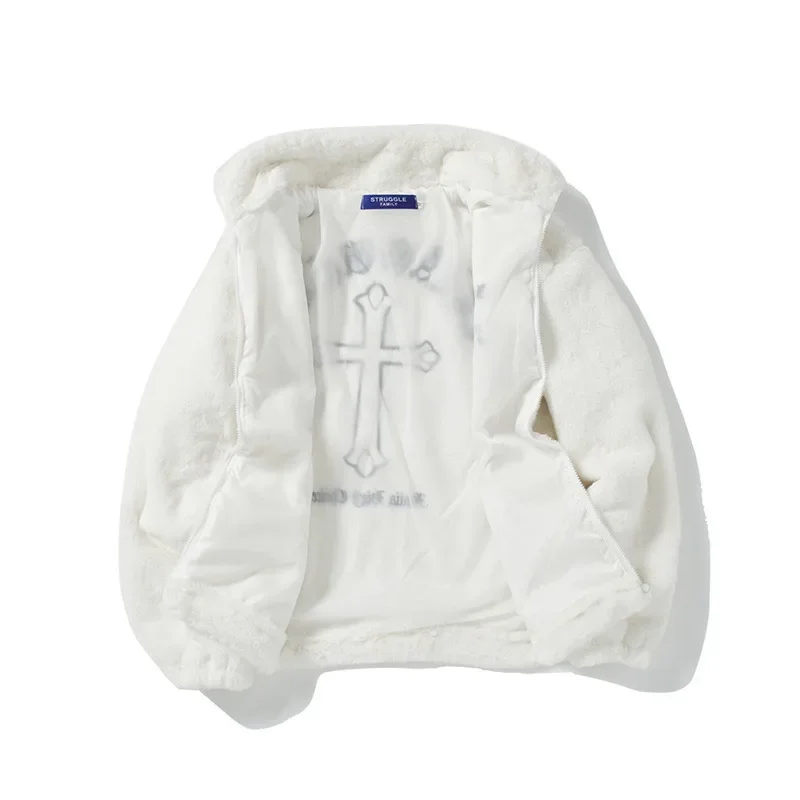 Advbridge Fashion Street Embroidery Plush Fleece Jacket Men's Long Sleeve Stand Collar Lamb Wool Coat 2024 Winter Thick Warm Male Overcoat