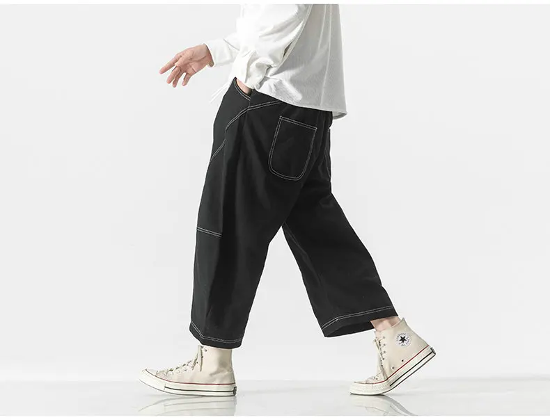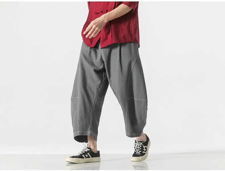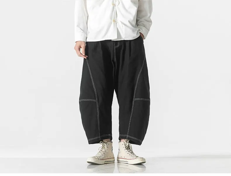 Advbridge Fashion Wide Leg Pants Men Cotton Casual Pants Men Harajuku Style Harem Pants Male Button Fly Trousers New Streetwear 5XL