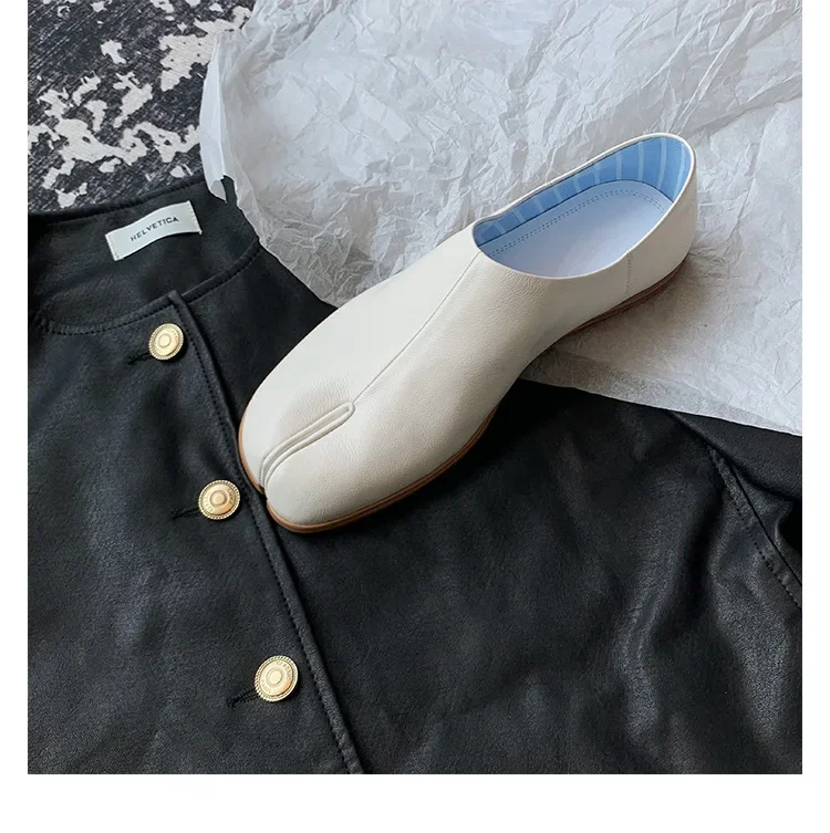 ADVBRIDGE - Flat Shoes Woman Silver Tabi Ninja Women Shoes Split Toe Flats Trotters Mocasines Leather Loafers Shoes for Women