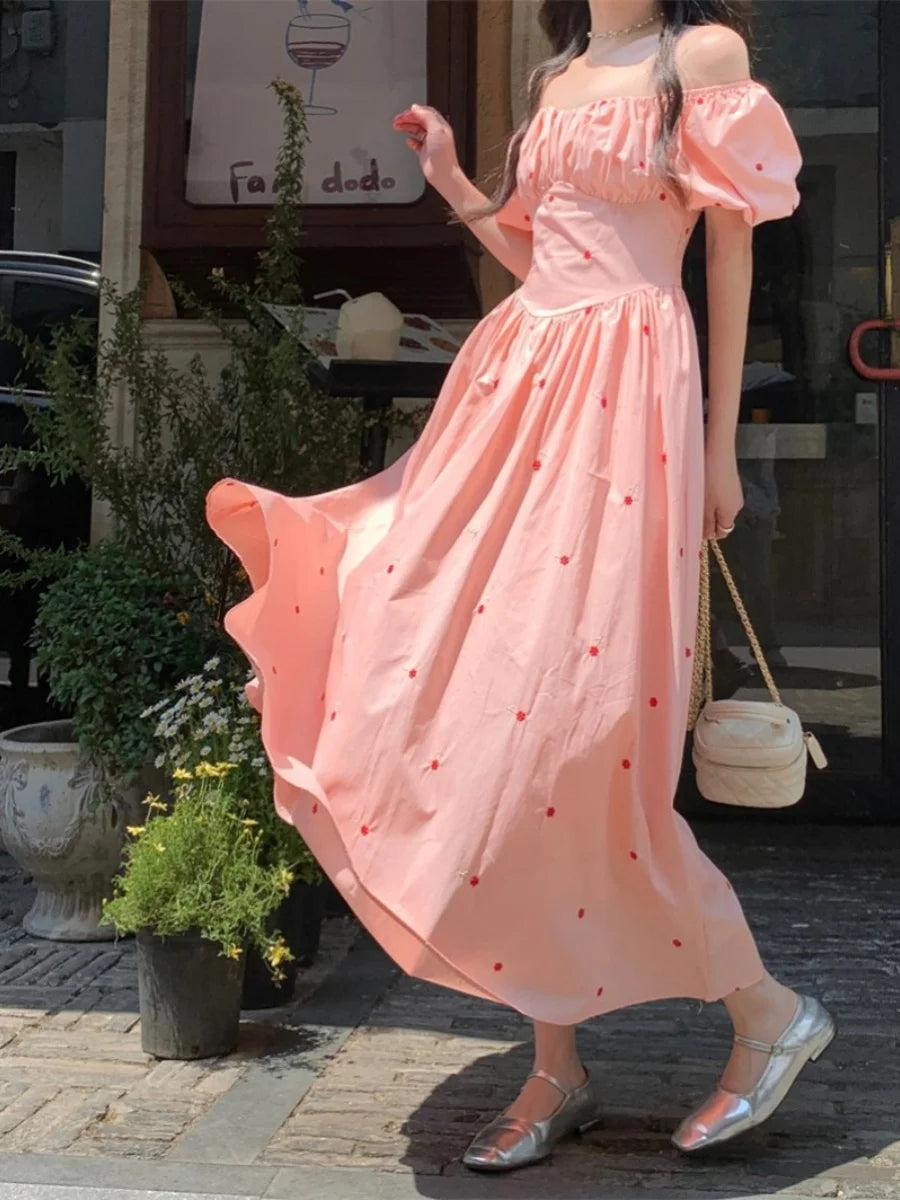 Advbridge French Gentle Square Collar Bubble Sleeve Vestidos Temperament Dress Female Robe Summer 2025 New Waist A-wave Long Dresses