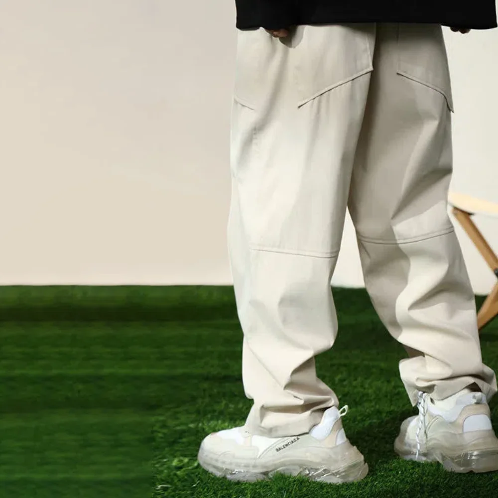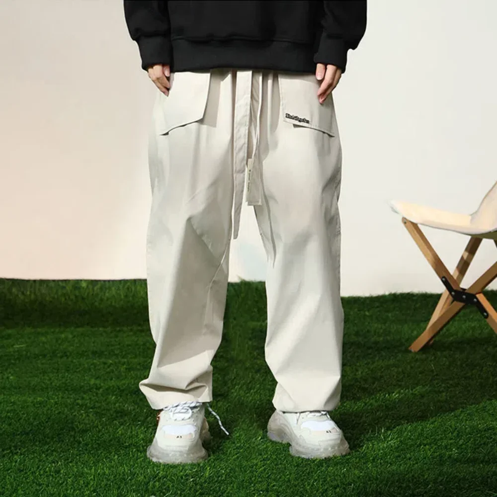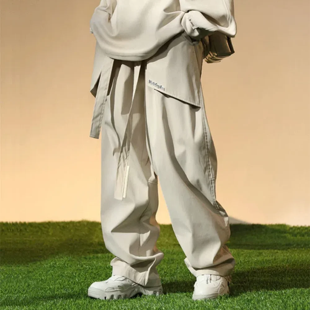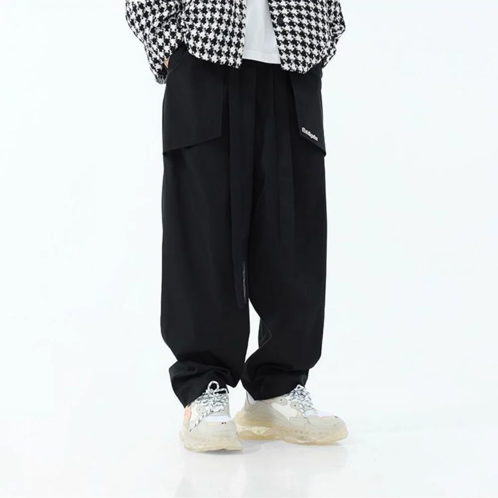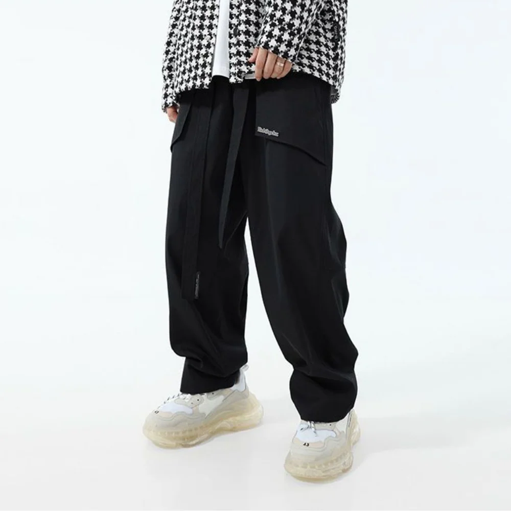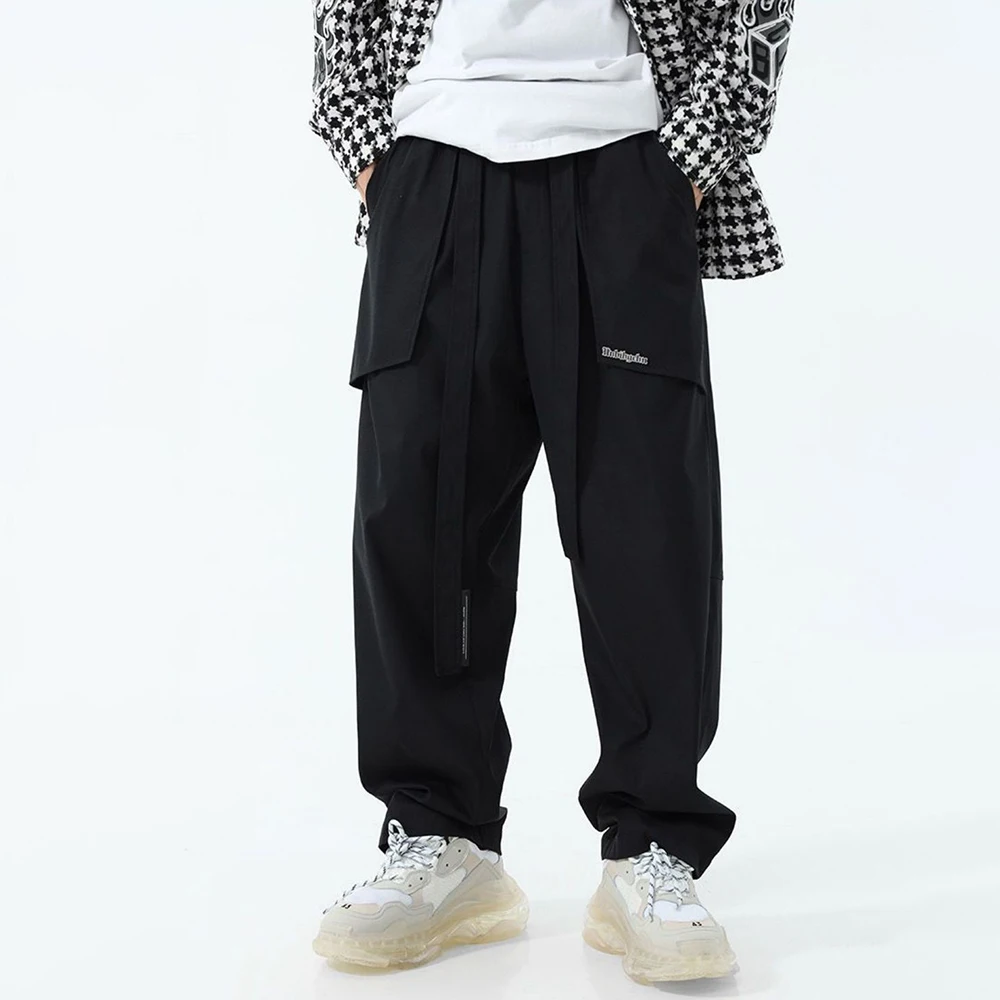 Advbridge Harajuku Japanses Patch Pocket Trousers Men's Cargo Pants Streetwear Wide Leg Pants Unisex Simple Style Loose Straight Pants