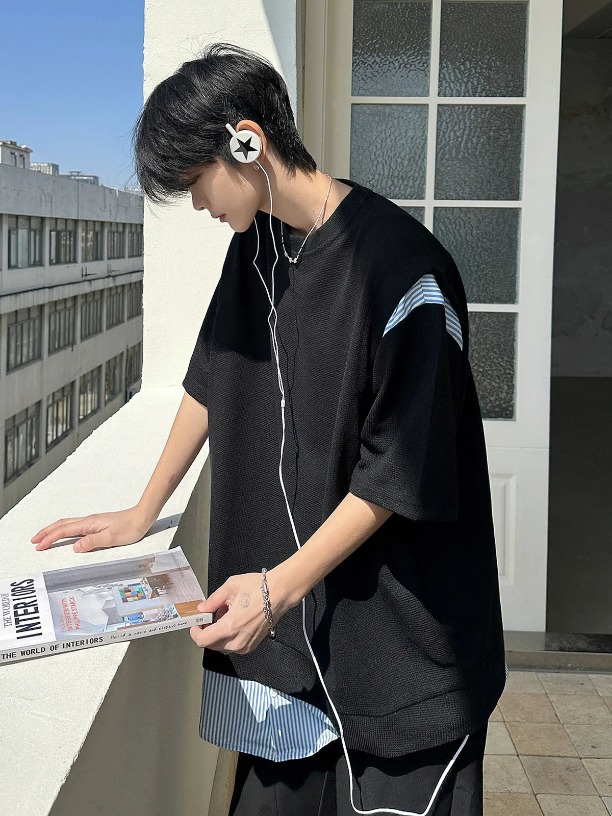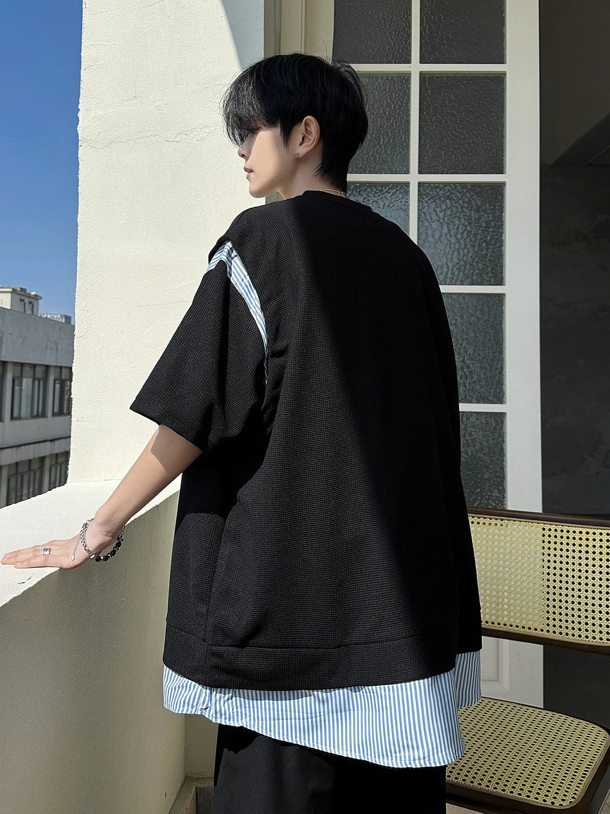 ADVBRIDGE - Hot Sale Cotton T-Shirt Bleach Cosplay T Shirt  Men Patchwork O-Neck Short Sleeve Tee Fashion T Shirt for Men Clothing Q84