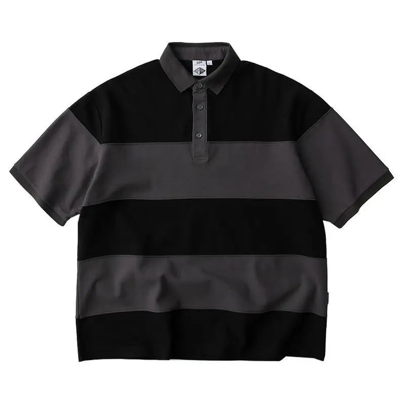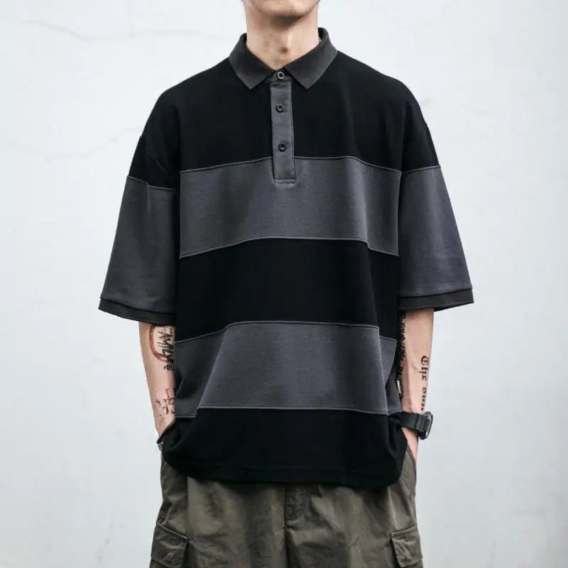 Advbridge Japanese Style Summer New Men's Turn-down Collar Spliced Striped Button Fashion Vintage Loose Half Sleeve Tops T-shirt