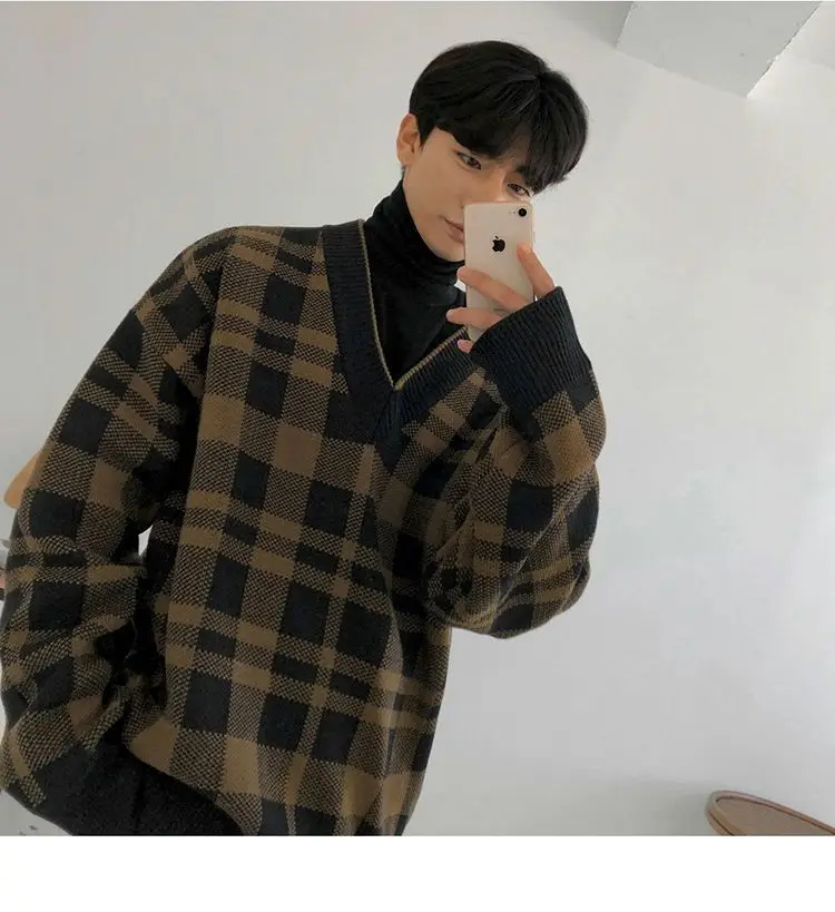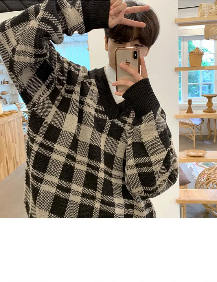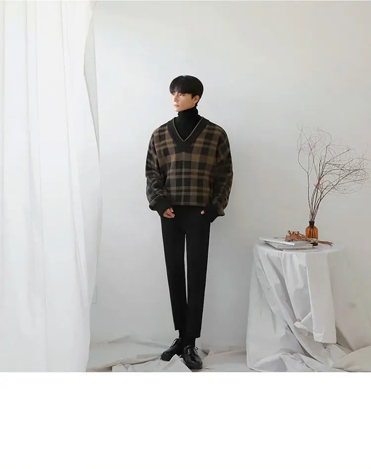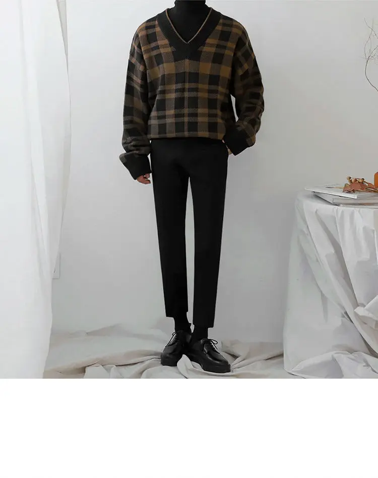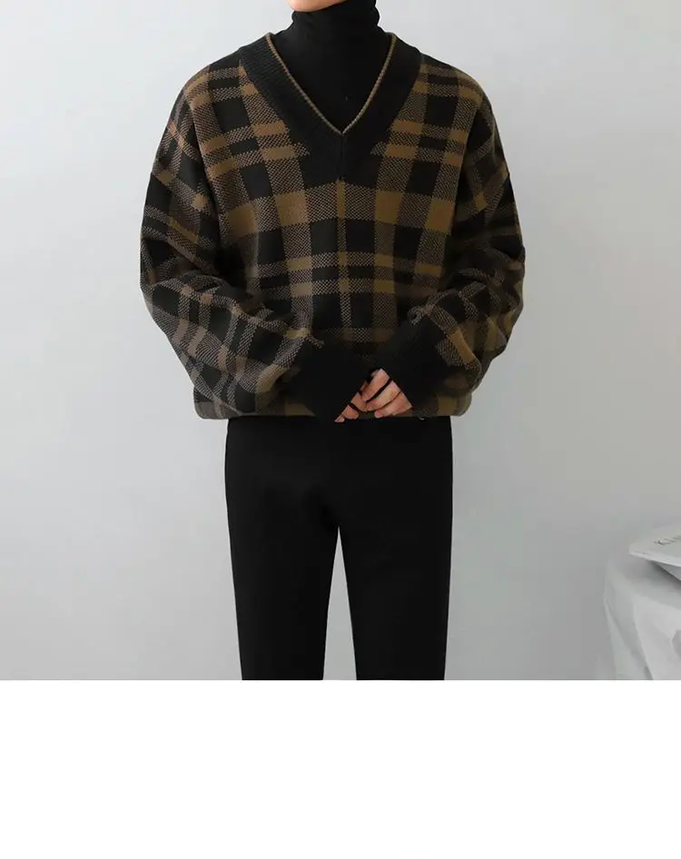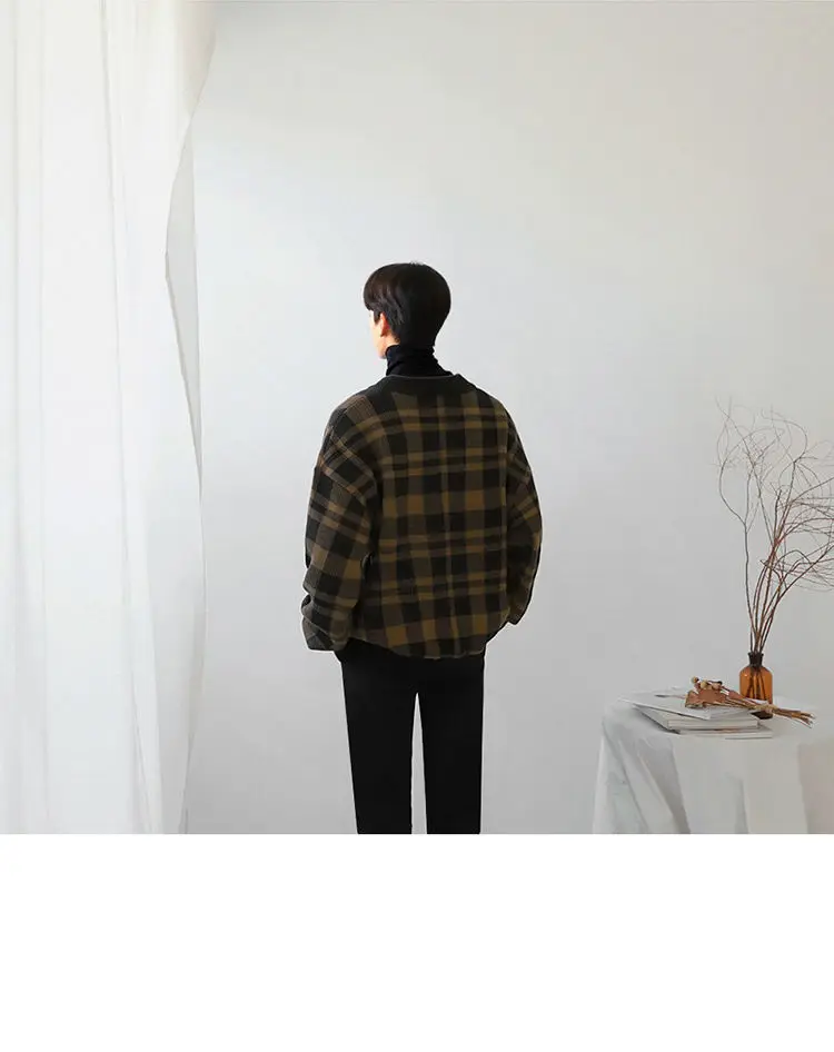 ADVBRIDGE Long Sleeve Slim Top Cotton Blend Men Stripe Plaid Print Male Pullover Sweater For Autumn Men Clothing Casual Streetwear G52