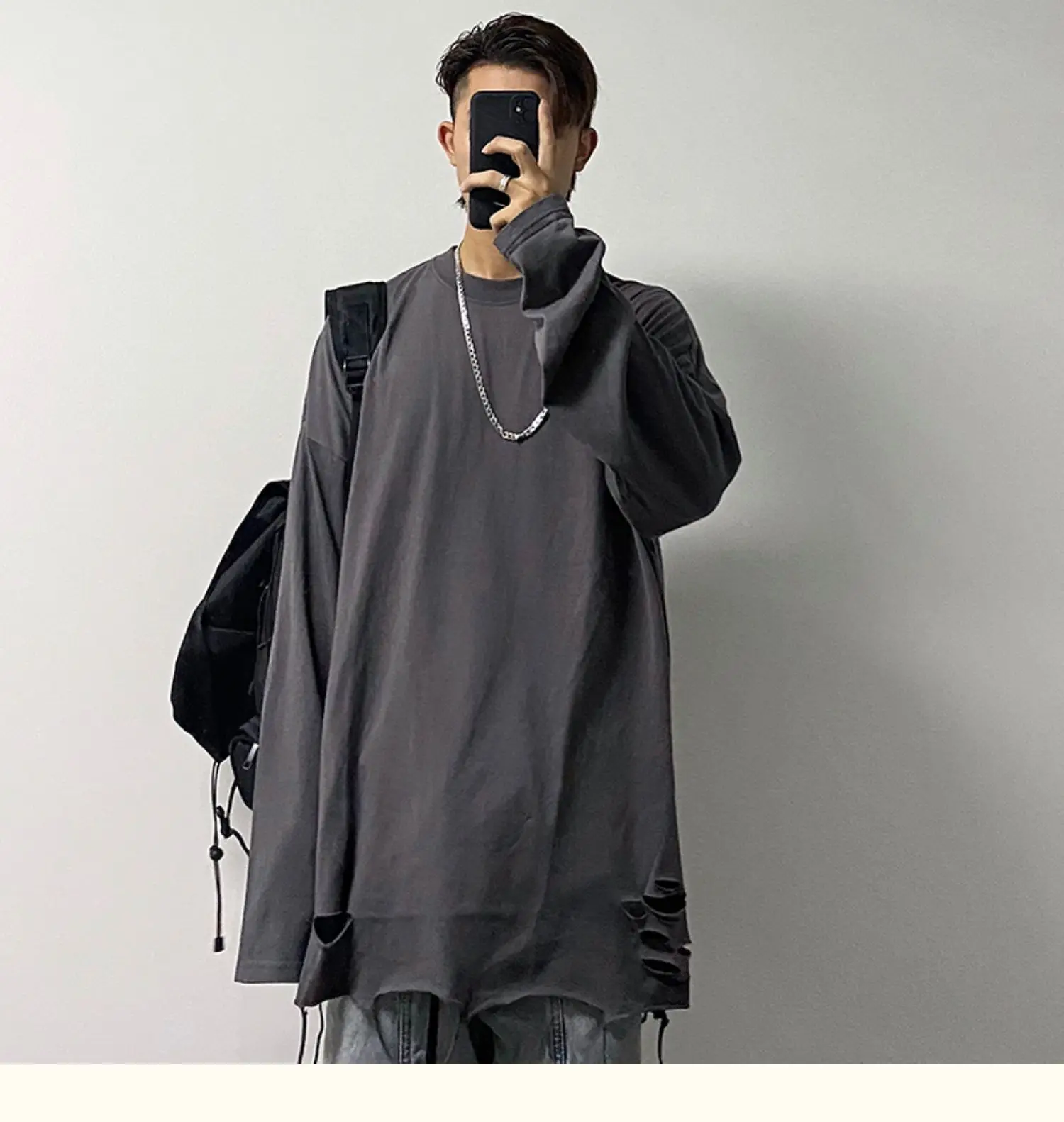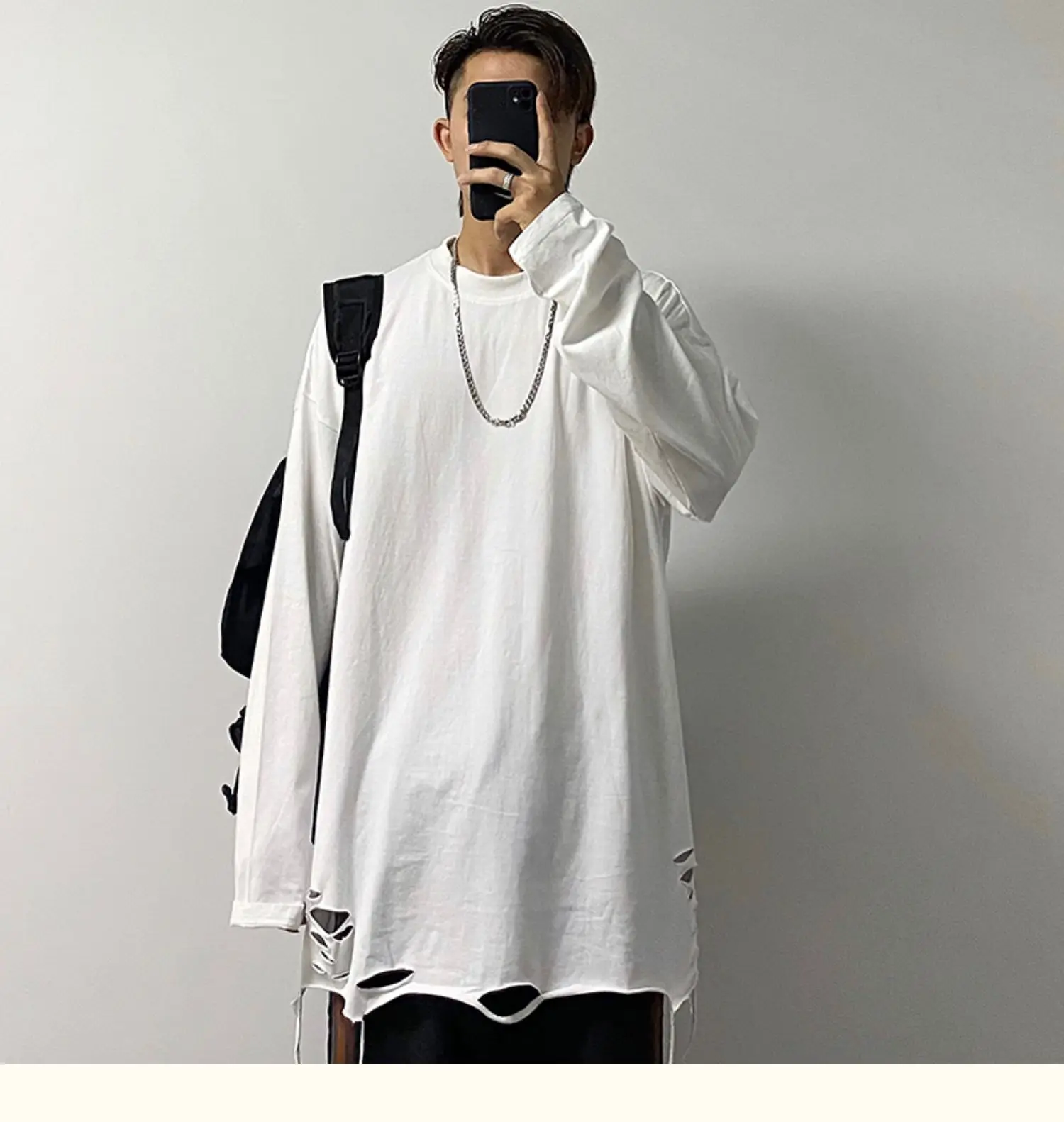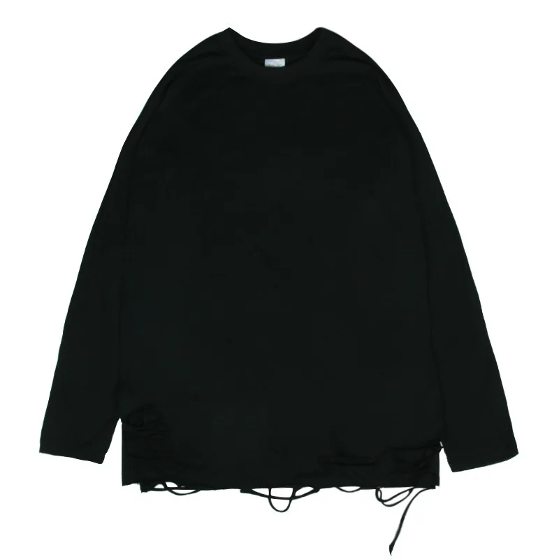 Advbridge Long Sleeve T-shirts Men Solid Loose Distressed Hole Spring Autumn High Street Broken O-neck American Style Teenagers Youthful