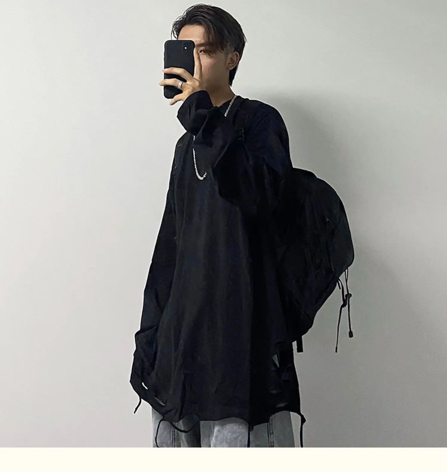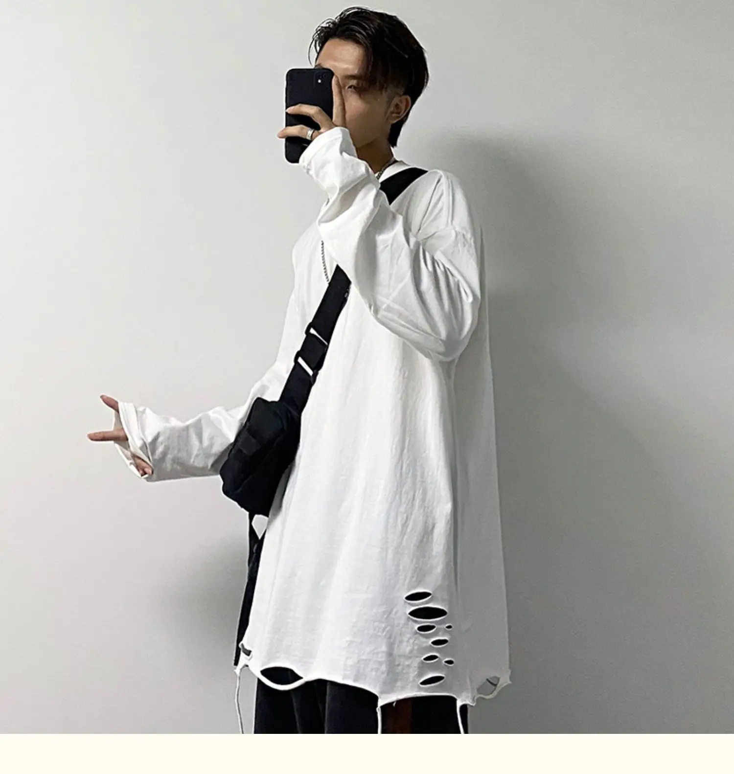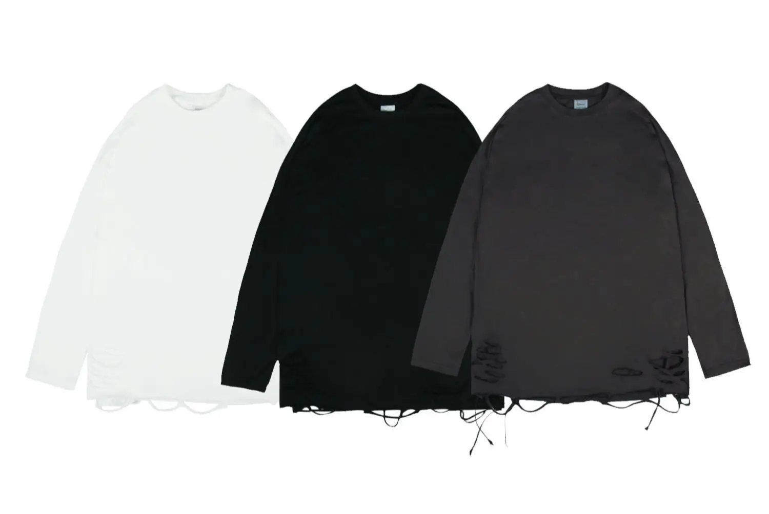 Advbridge Long Sleeve T-shirts Men Solid Loose Distressed Hole Spring Autumn High Street Broken O-neck American Style Teenagers Youthful