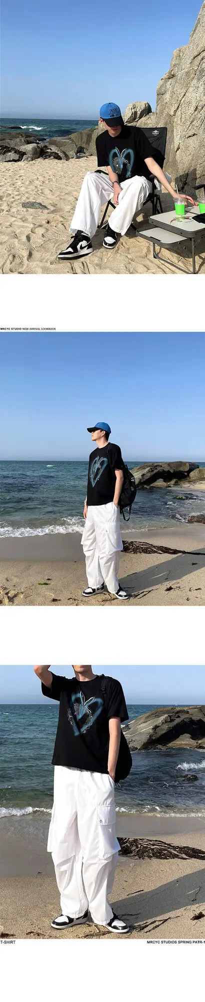 Advbridge Loose Men's T-shirt Korean Style Casual Round Neck Letter Printed Short Sleeved Male Cotton Tops 2024 Summer New Fashion