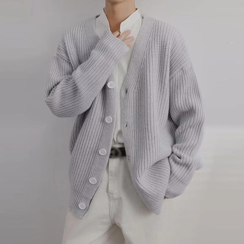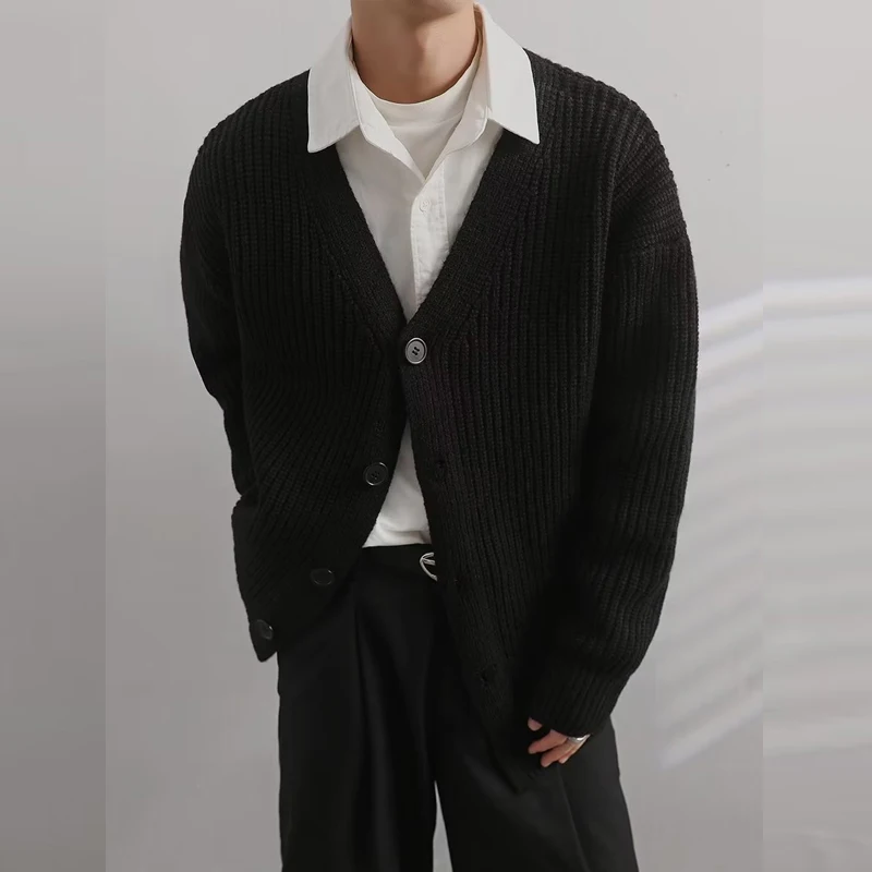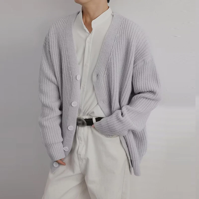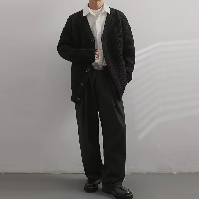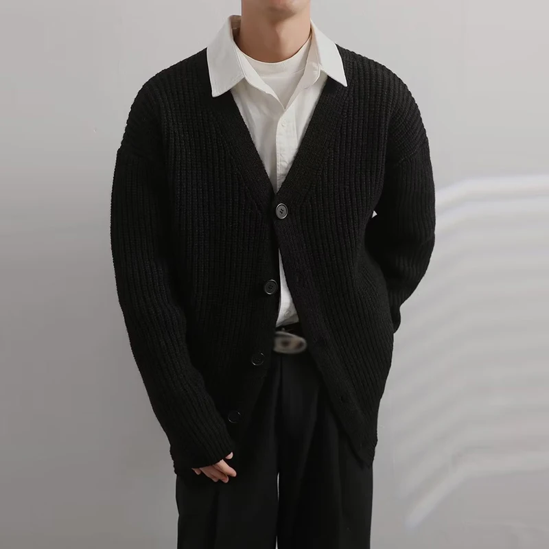 Advbridge Luxury Fleece Solid Knit Sweaters Coats Casual Streetwear Men Fashion Long Sleeve Button Jumper Tops Warm V-Neck Loose Cardigan