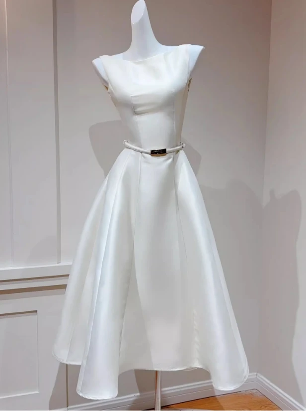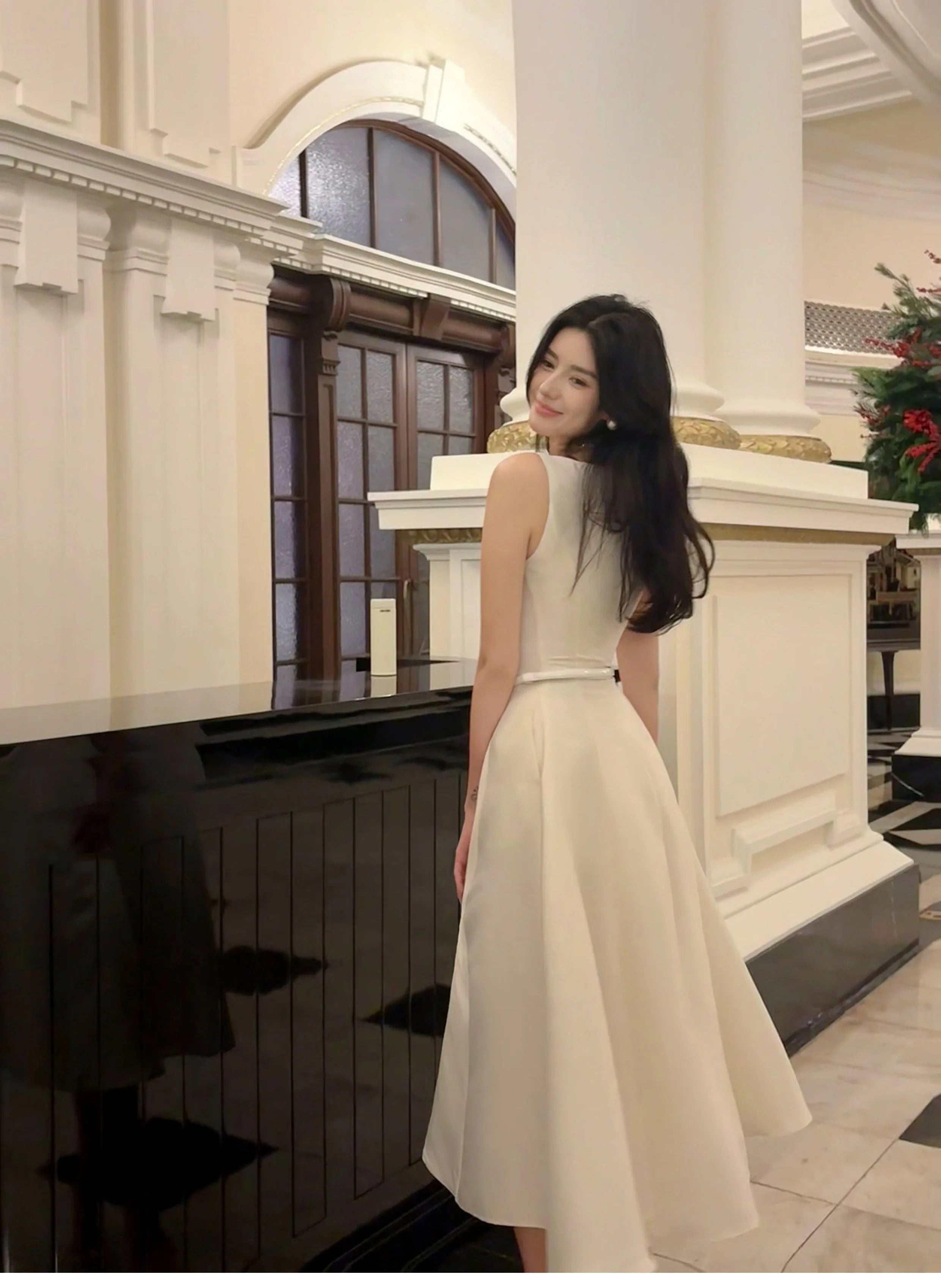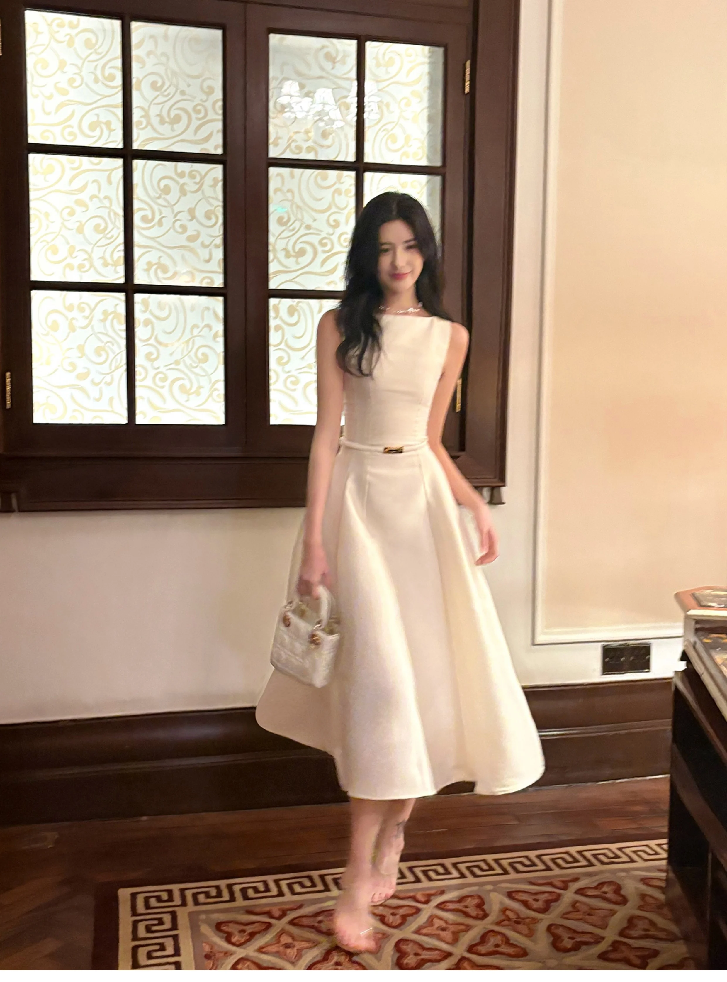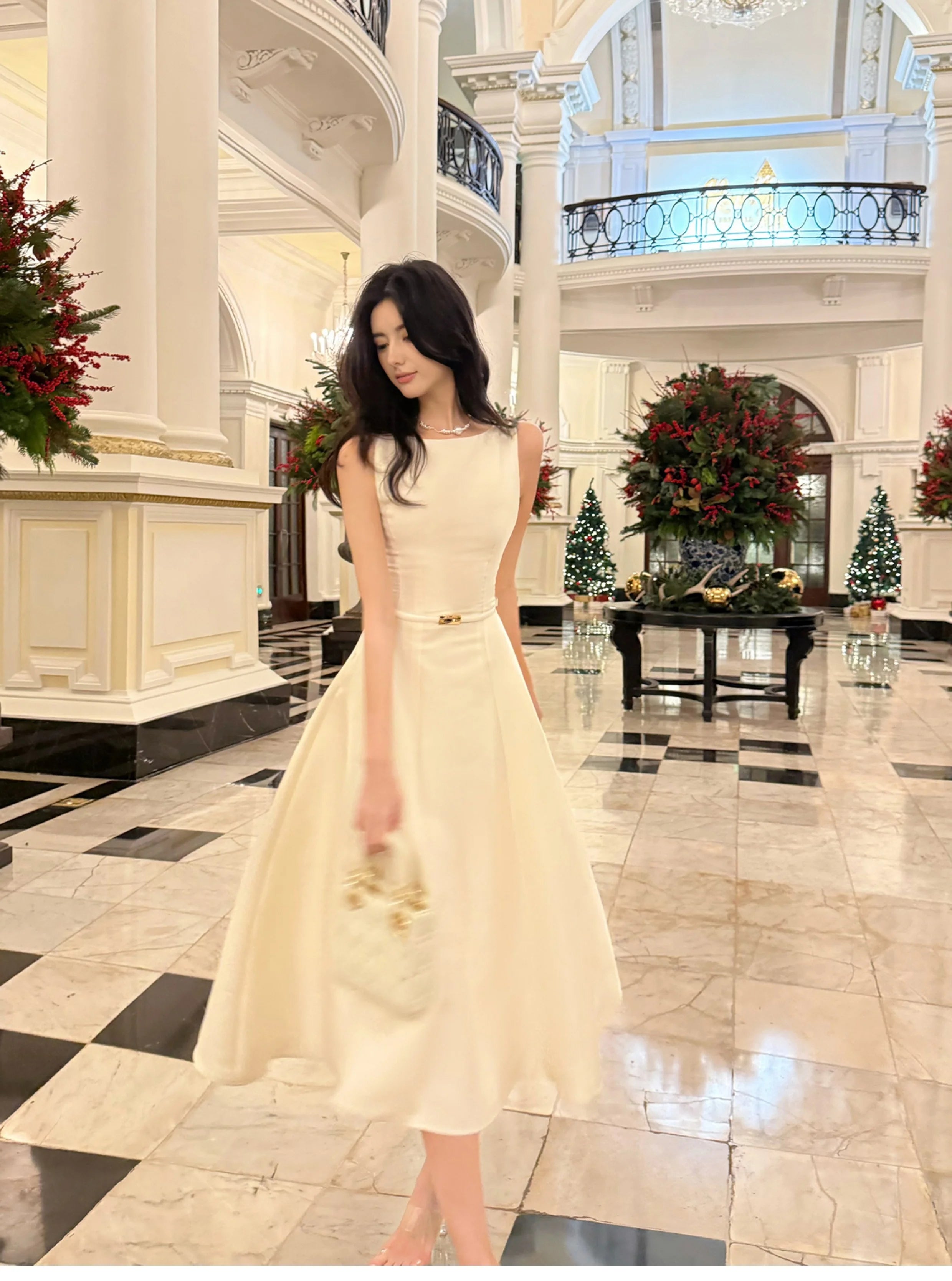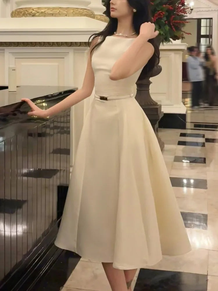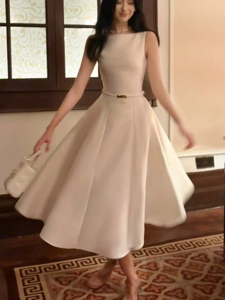 ADVBRIDGE - Luxury French Elegant Vintage White Midi Dress Slim Wasit Sleeveless A-Line Momen's Dresses Prom Female Clothes New Mujer 2025