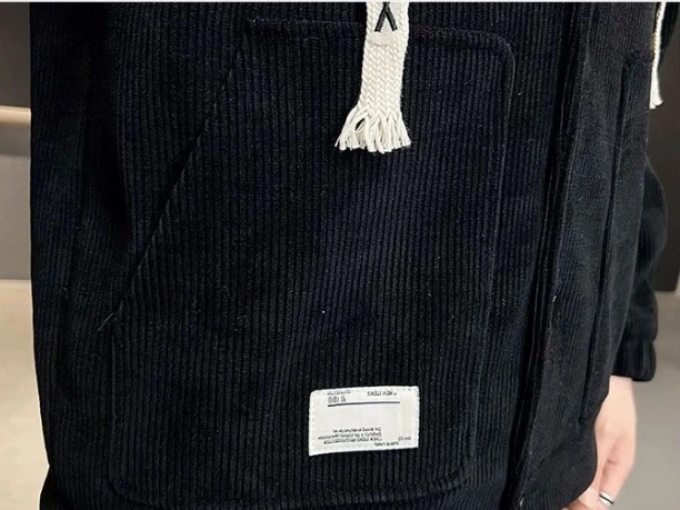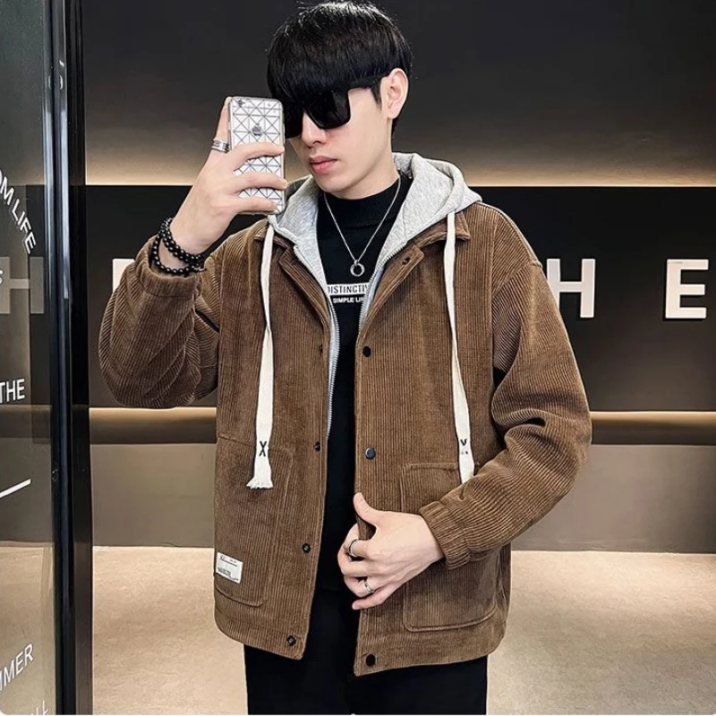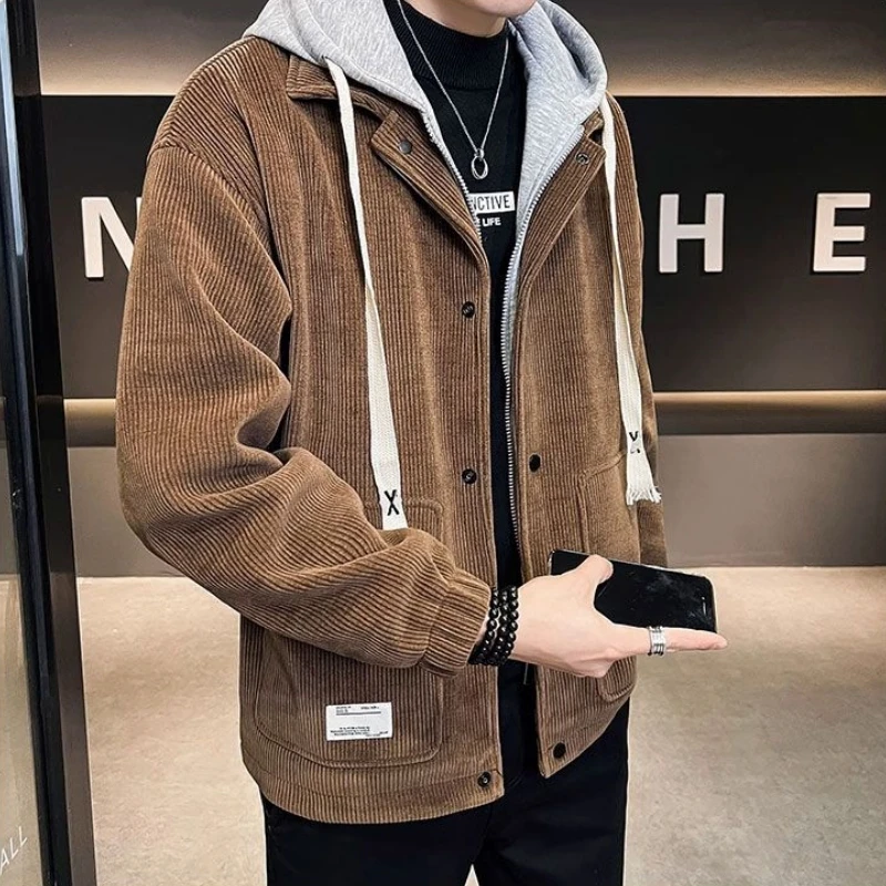 Advbridge Men Corduroy Coat Autumn Winter Fake Two-piece Hooded Drawstring Jacket Quality Casual Large Size M-8XL Men's High-end Clothing