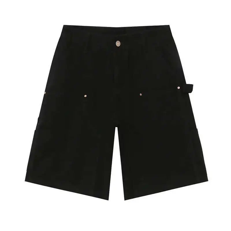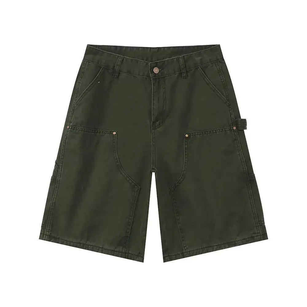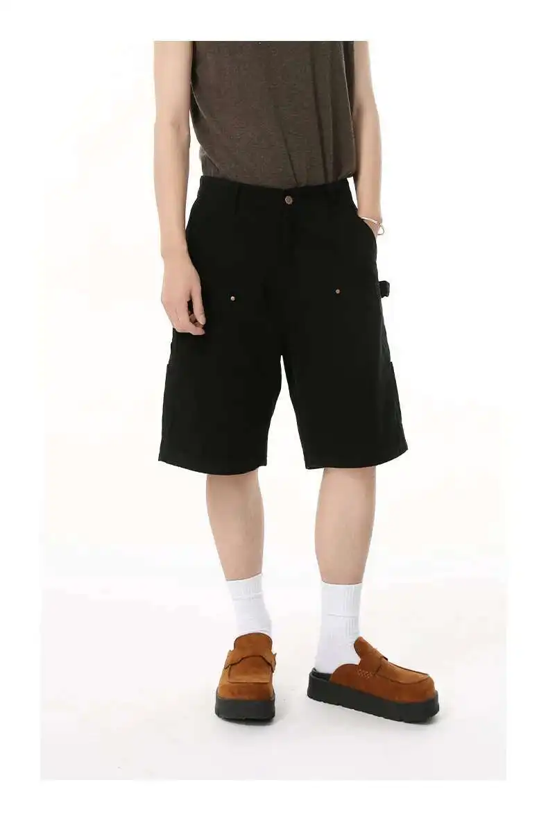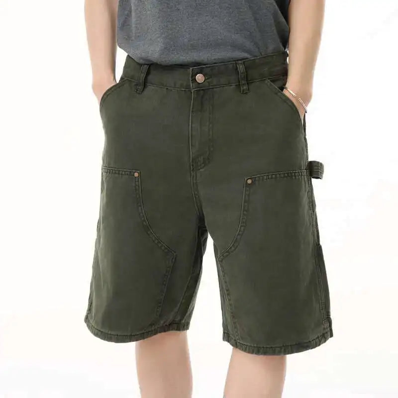 ADVBRIDGE  -  Men Denim Shorts Multi Pockets Design American Style Jeans Solid Color Trendy Straight Wide Leg Washed Male Bottoms 2025