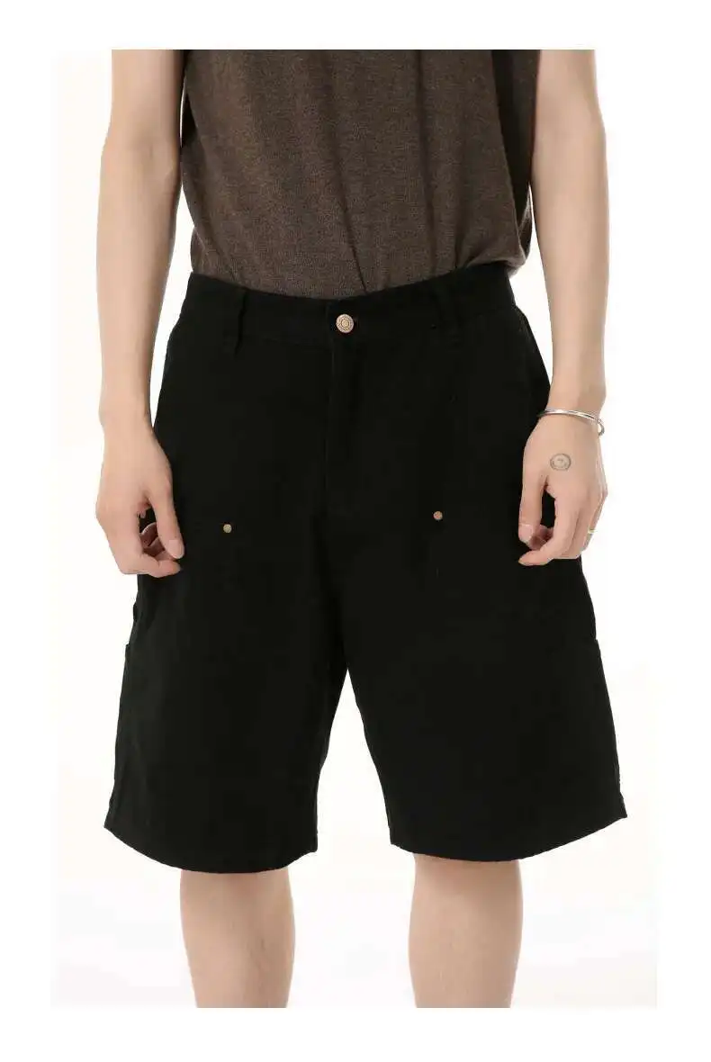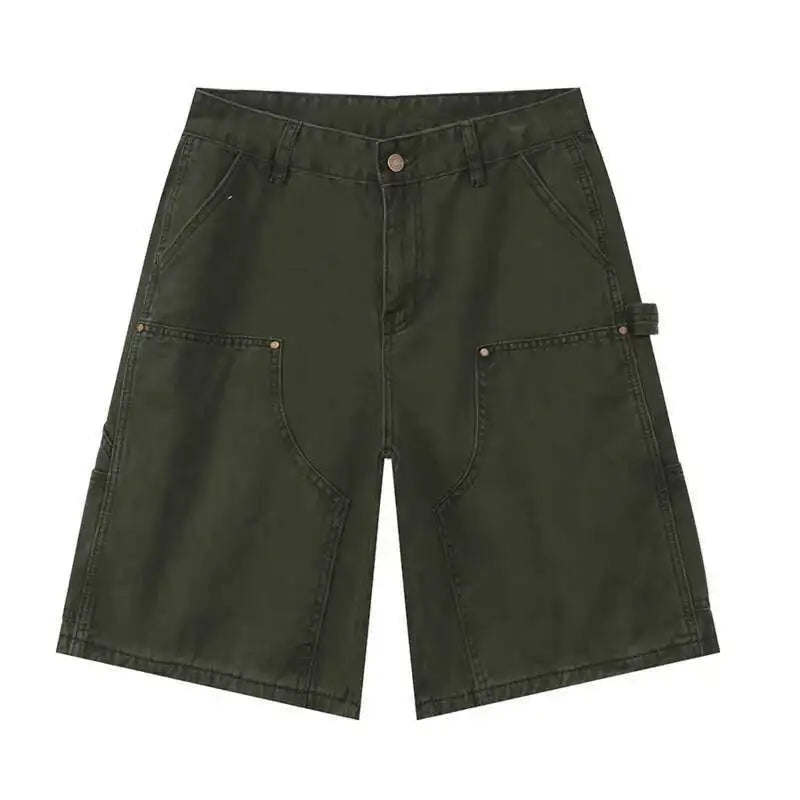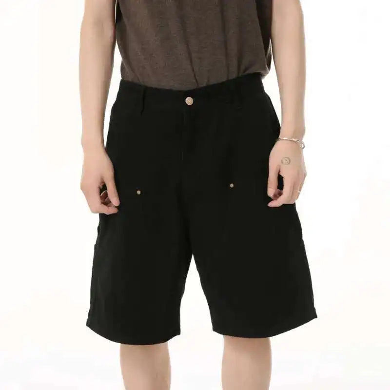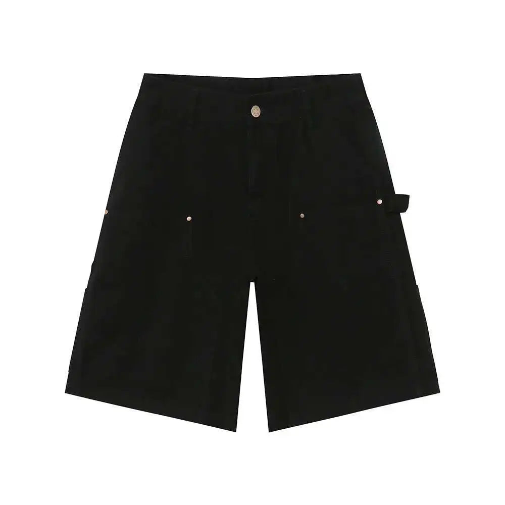 ADVBRIDGE  -  Men Denim Shorts Multi Pockets Design American Style Jeans Solid Color Trendy Straight Wide Leg Washed Male Bottoms 2025