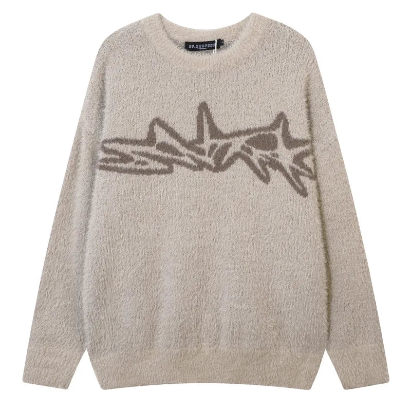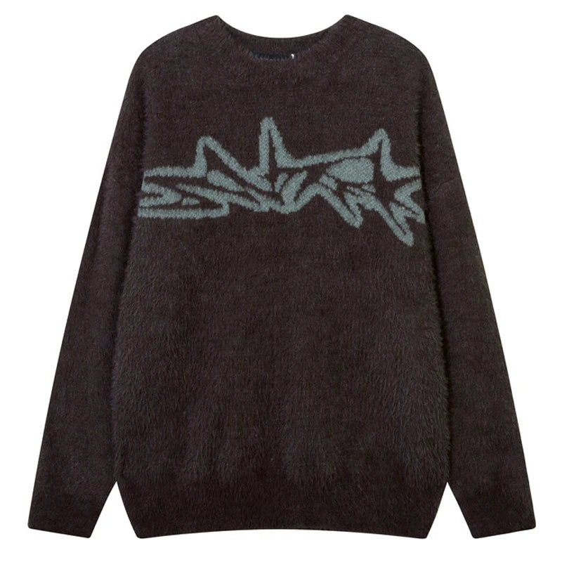 Advbridge Men Hip Hop Streetwear Fluffy Knitted Sweater Pullover Letter Jacquard Fall Winter Autumn Harajuku Cotton Casual Pullover Black