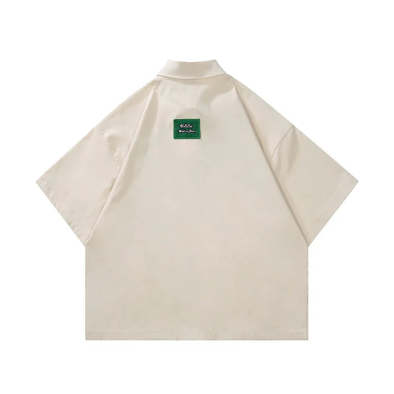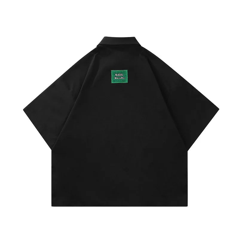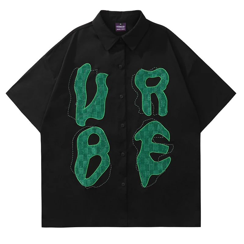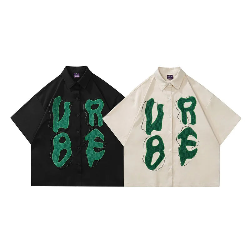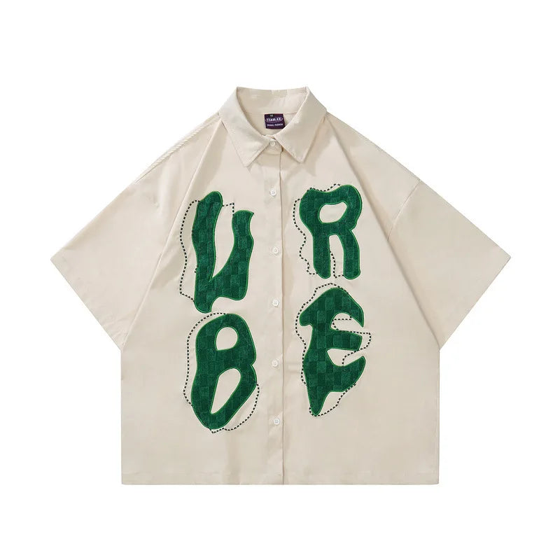 Men Hip Hop Streetwear Retro Shirt Letter Creative Embroidery shirt Cotton Shirt Short Sleeve Racing Style Tops Tees New