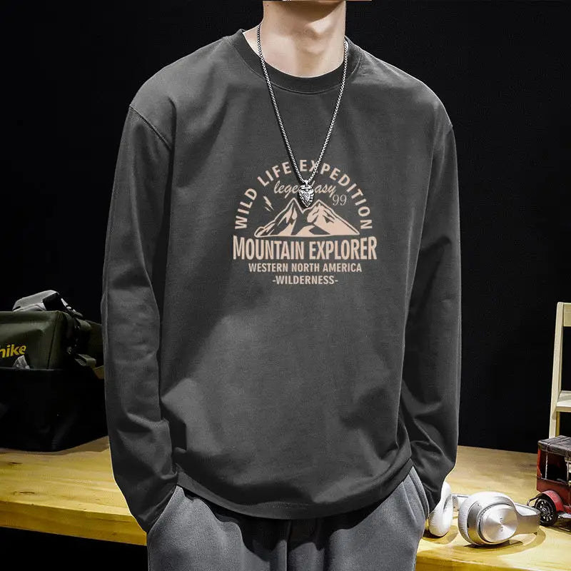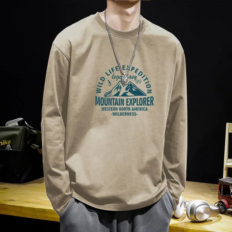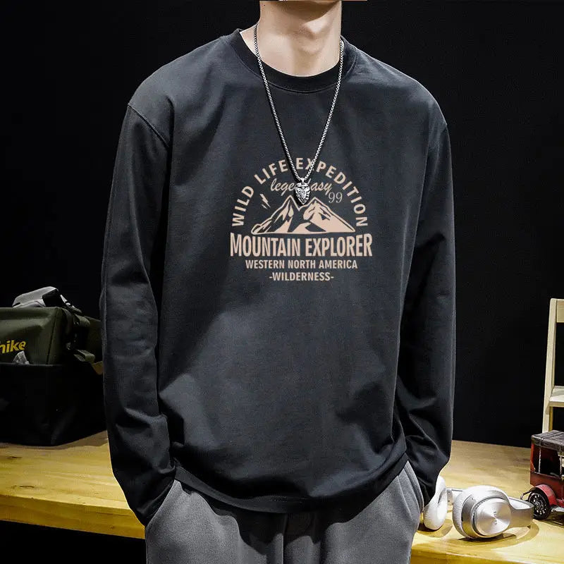 Advbridge Men‘s Wintern outfits 2024 Autumn Boyfriend New Spliced Pullover O-Neck Printed Letter Fashion Solid Color Loose and Versatile Casual Long Sleeve Tops