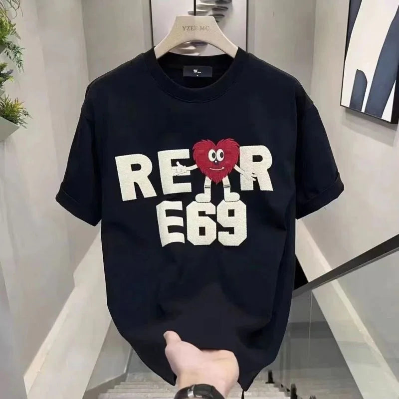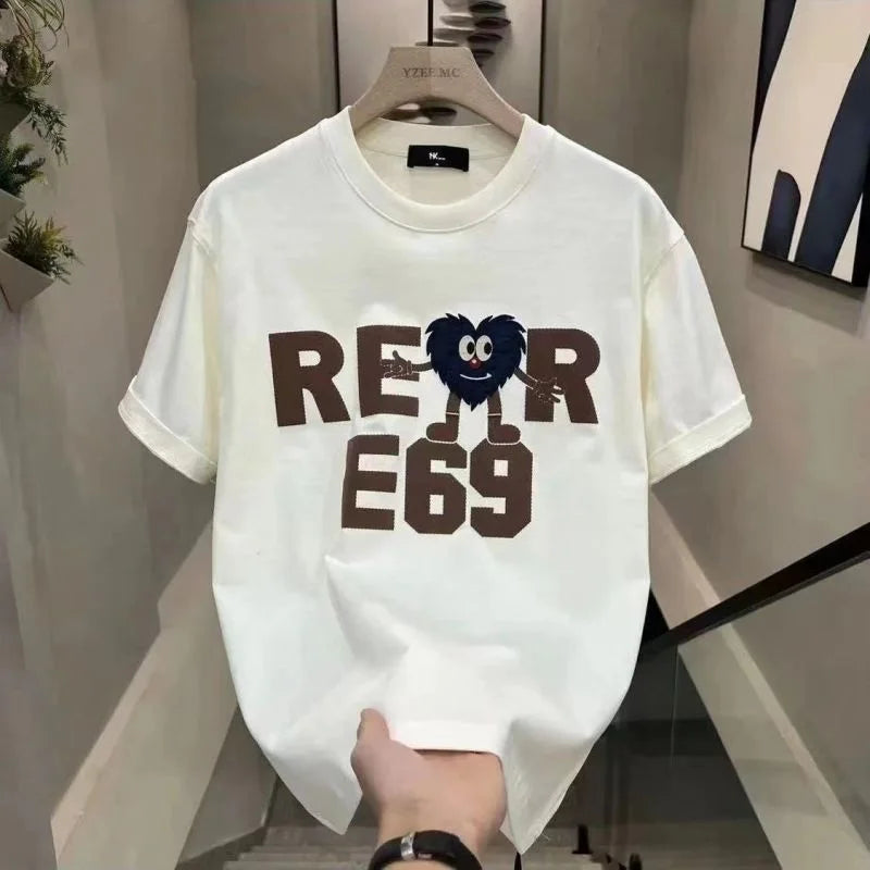 Advbridge Men‘s Wintern outfits 2024 Summer Korean Version Loose Casual Oversized Comfortable and Breathable Round Neck Printed Short Sleeved T-shirt for Men