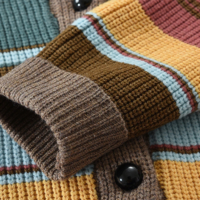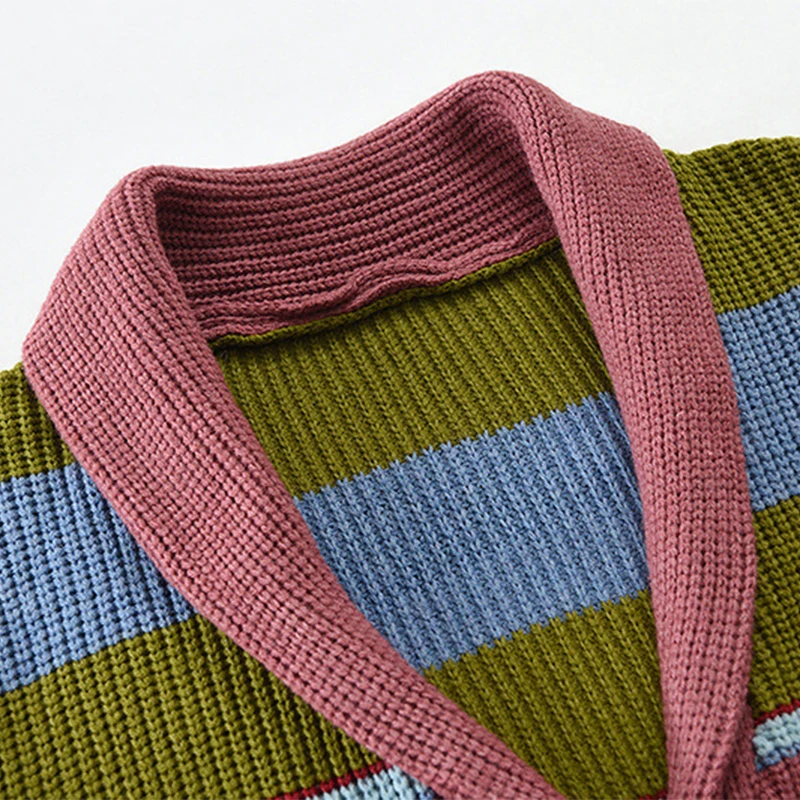 Advbridge Men‘s Wintern outfits Trendy Mens Knitted Cardigans 2025 Spring Casual Button-up Lapel Sweatercoats Men Vintage Rainbow Striped Sweater Jacket Coats