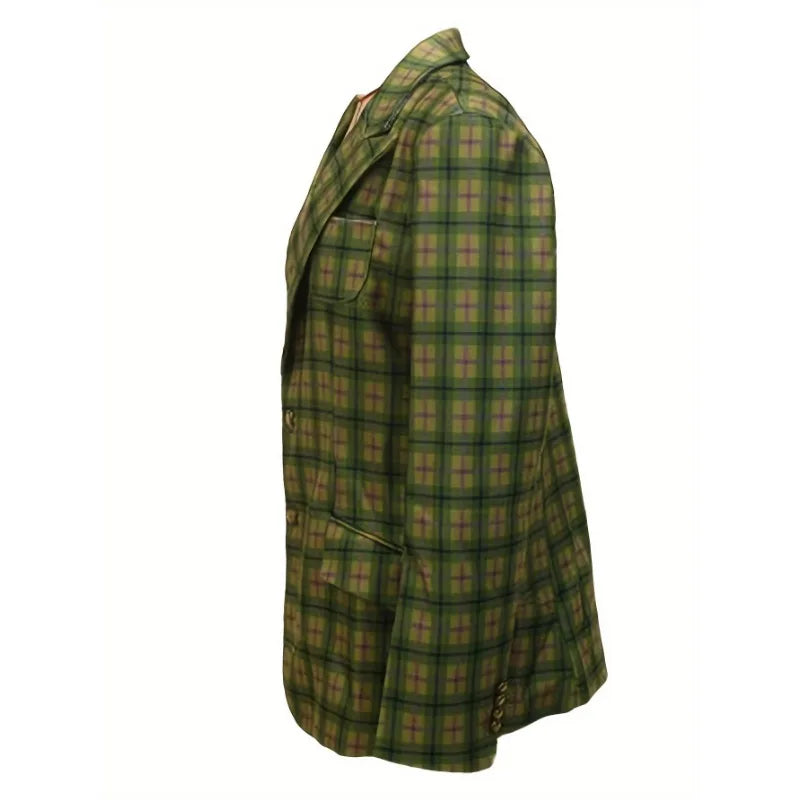Advbridge Men's Allover Stripe Plaid Print Long Sleeve Classic Lapel Two Button Suit Jacket Wedding Banquet Business Occasion Old Style