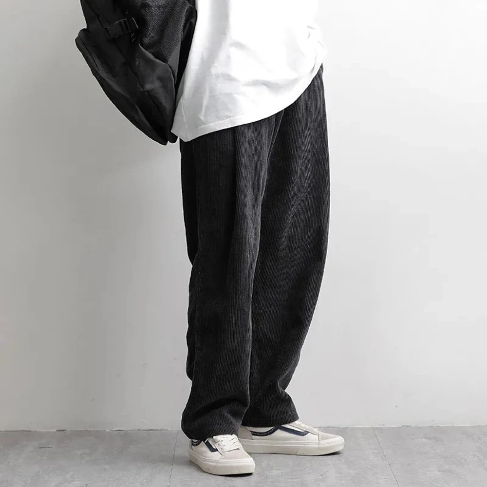 Advbridge Mens Casual Corduroy Pants Autumn Winter Genderless Japanese Lazy Style Loose Simple Basic Elastic Waist Straight Pants Unisex