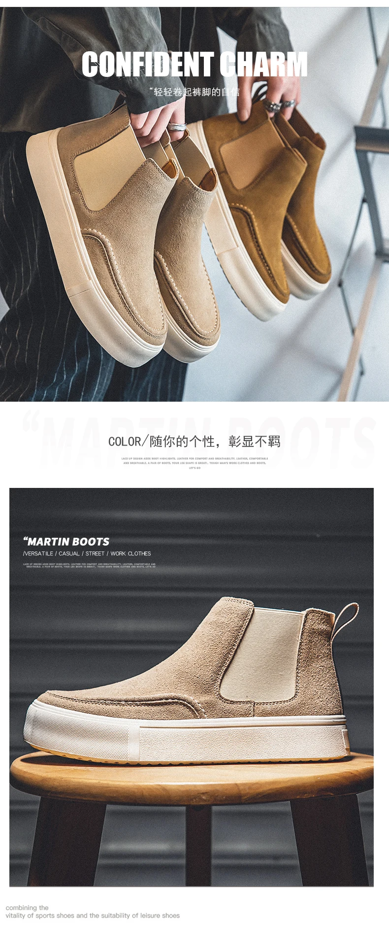 Advbridge Men's Chelsea Boots Comfortable Round Toe Fashion Trendy All-match Breathable Outdoor Platform Walking Boots Spring Autumn Main