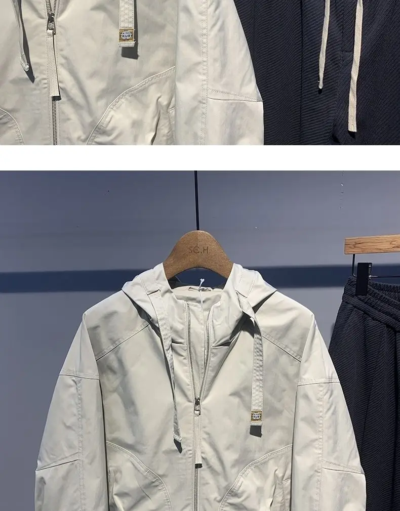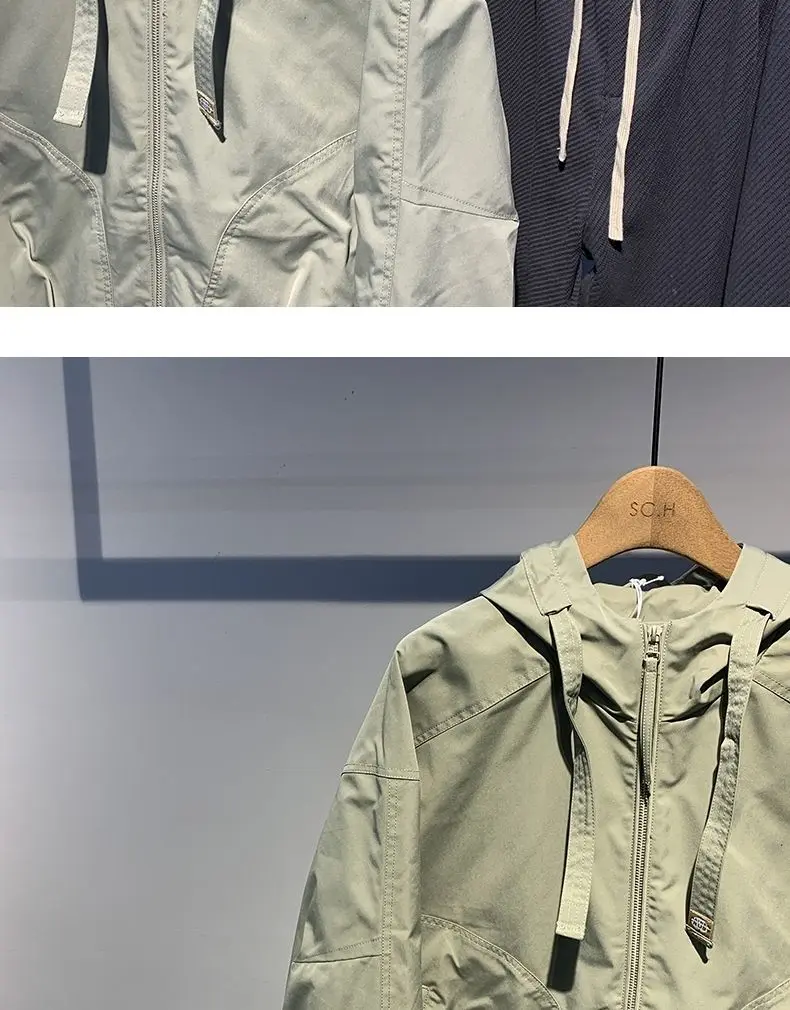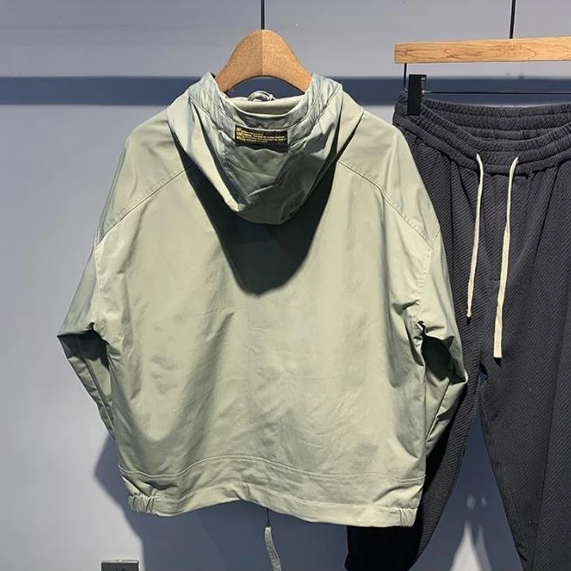 Advbridge Men's Clothing Trendy Casual Drawstring Cargo Zipper Hooded Jacket Spring Autumn Youth Solid Long Sleeve Loose All Match Coats
