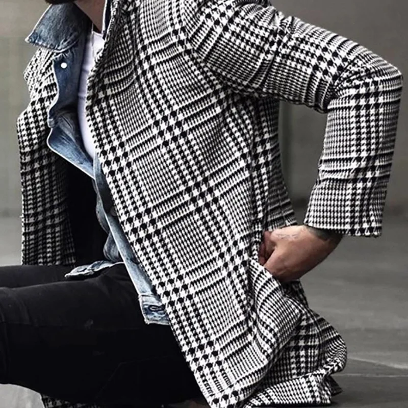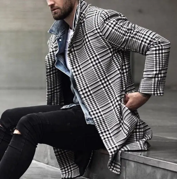 Advbridge Mens Coat Winter Jacket Men Overcoat Warm Clothes Wool Outwear Long Black White Plaid Blends Cardigan Male Coat Plus Size S-3XL