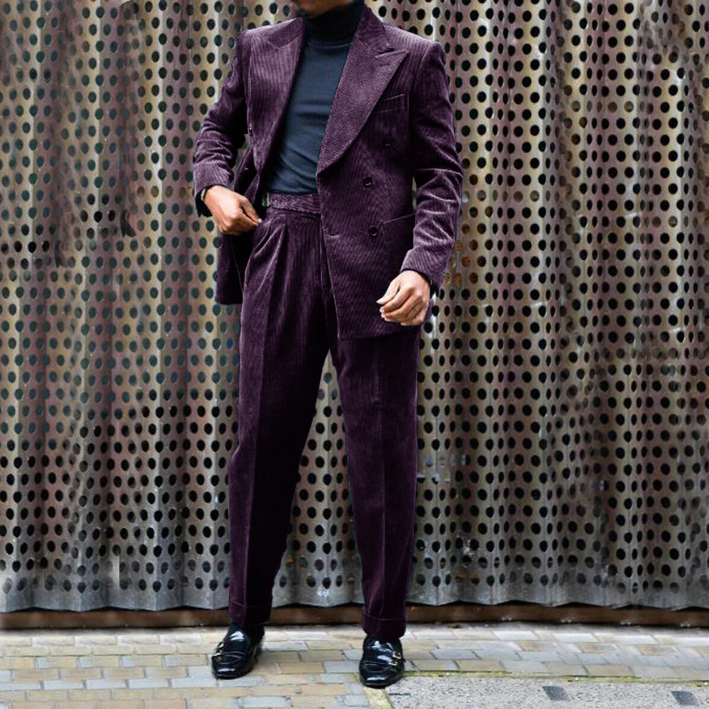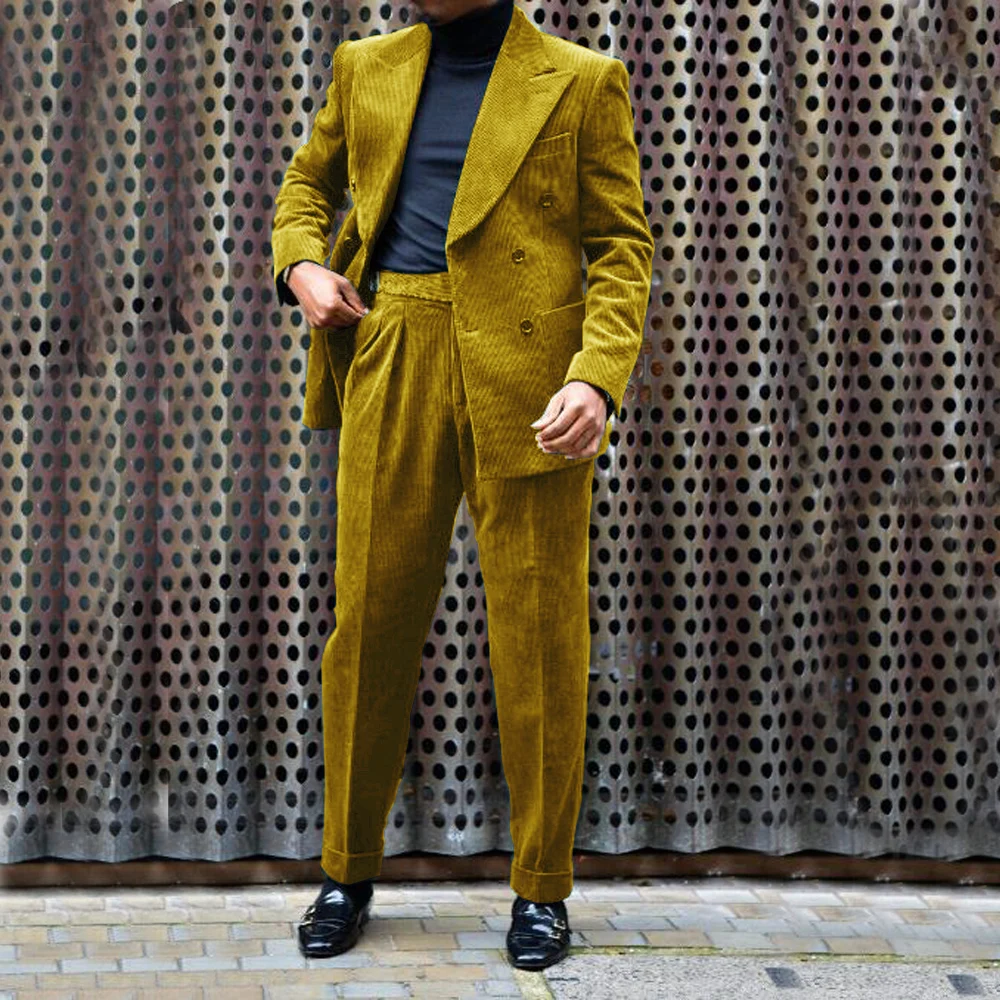 Advbridge Men's Corduroy Suit Double Breasted Gun Lapel 2 Piece Jacket + Pants Best Party Casual Men's Wedding Outfit Full Suit