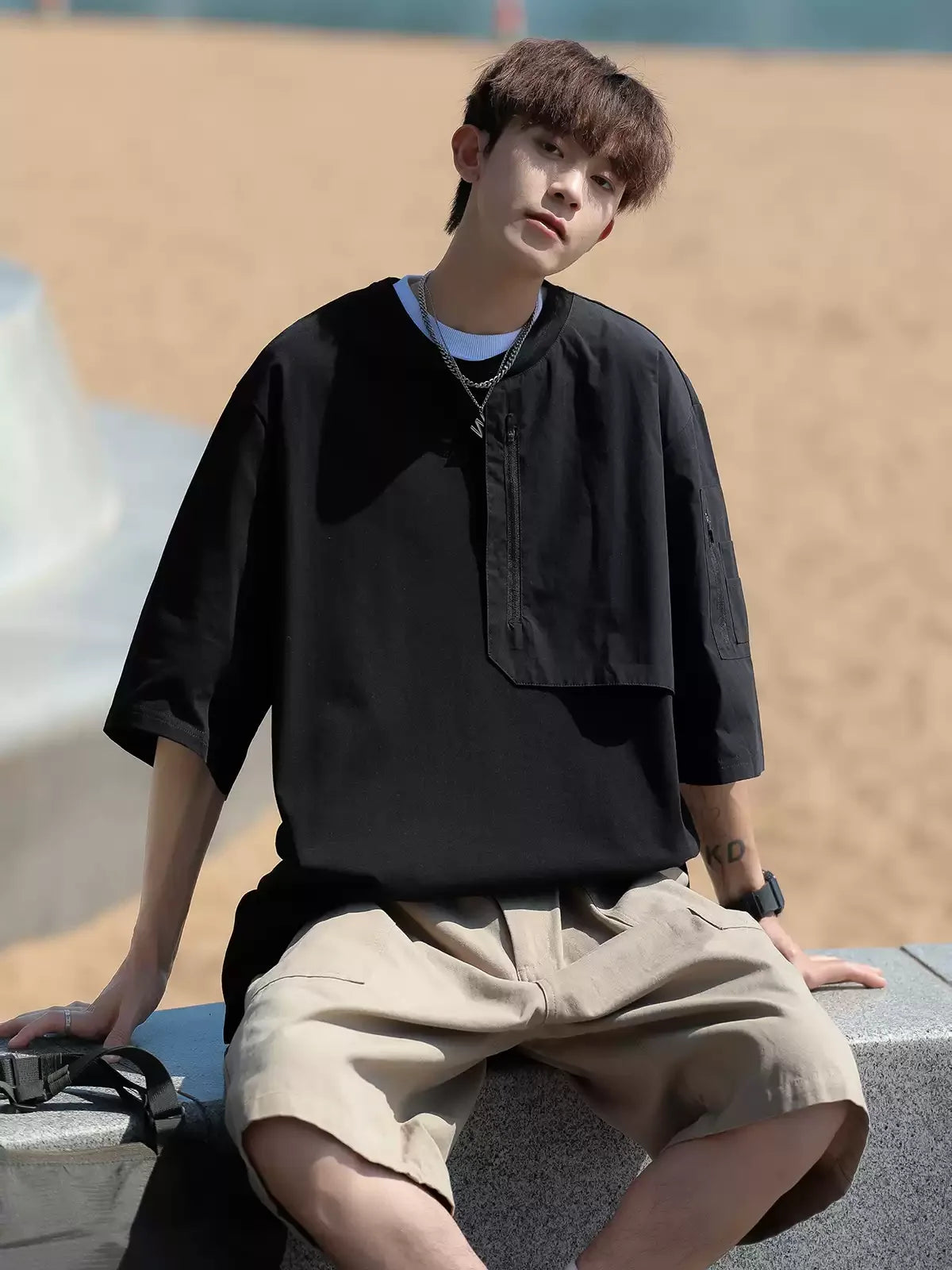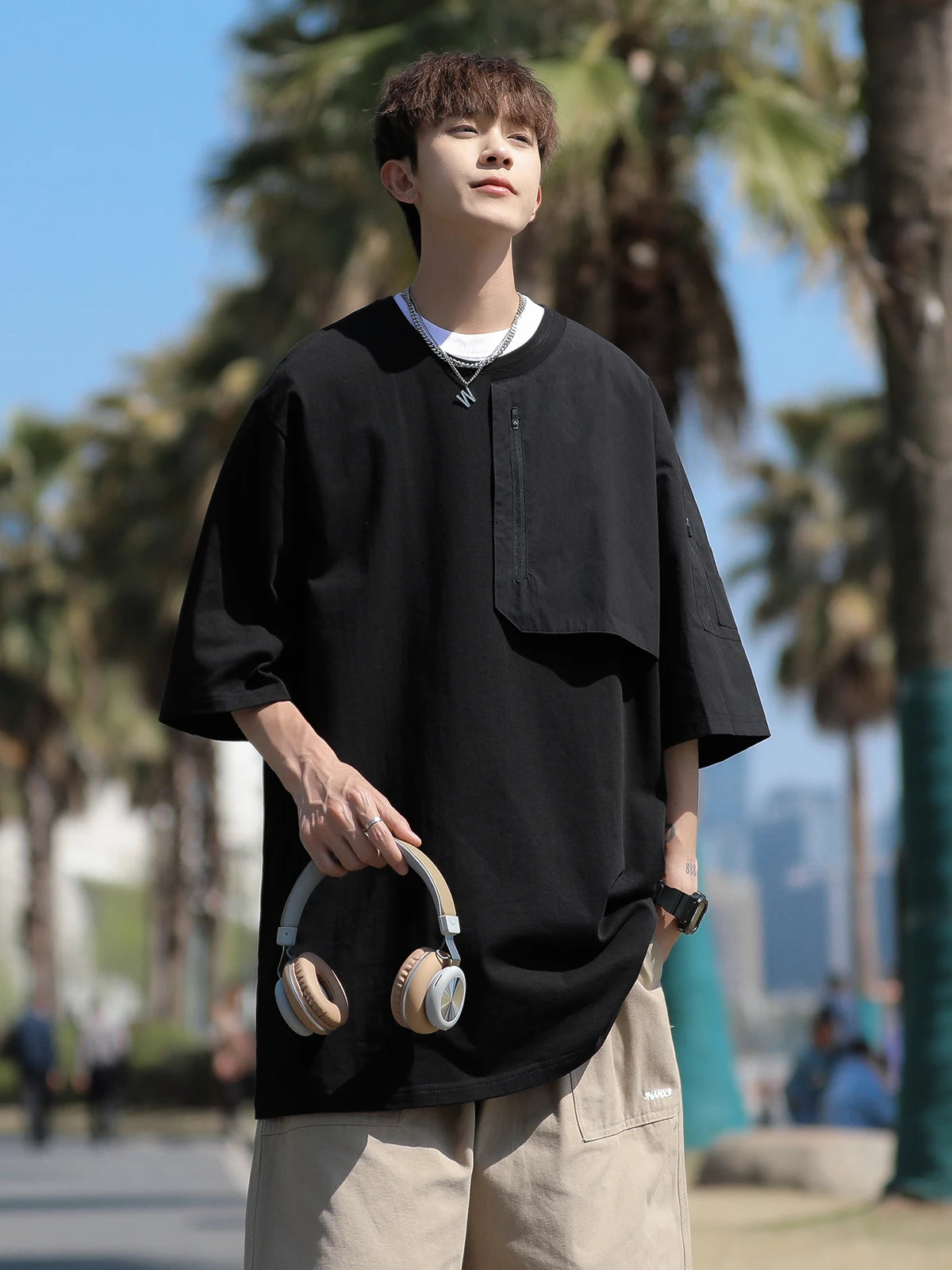 ADVBRIDGE - Men's High Quality T-shirt Cotton Funny Game Patchwork Loose Casual Loose O-neck Contrast Cool T-shirt Male Top Q112