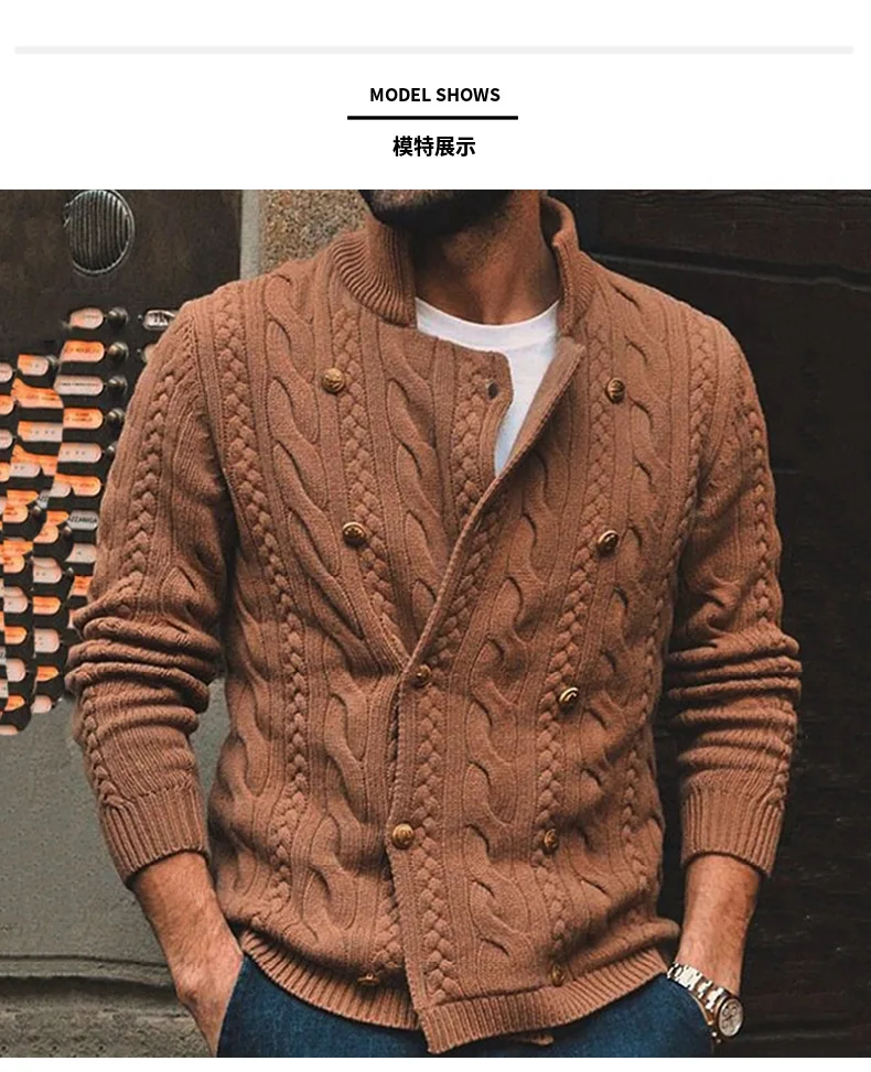 Advbridge Men's Knitted Sweater Coat Jacket Fashion Standing Collar Knit Long Sleeved Double Breasted Cardigan Sweater Jacket Male