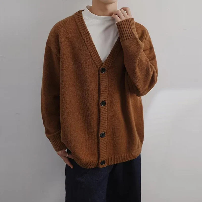 Advbridge Men's Korean Review Clothes Luxury Retro Knit V Neck Cardigan Long Sleeve Streetwear Stylish Sweater Leisure Fashion Knitwear