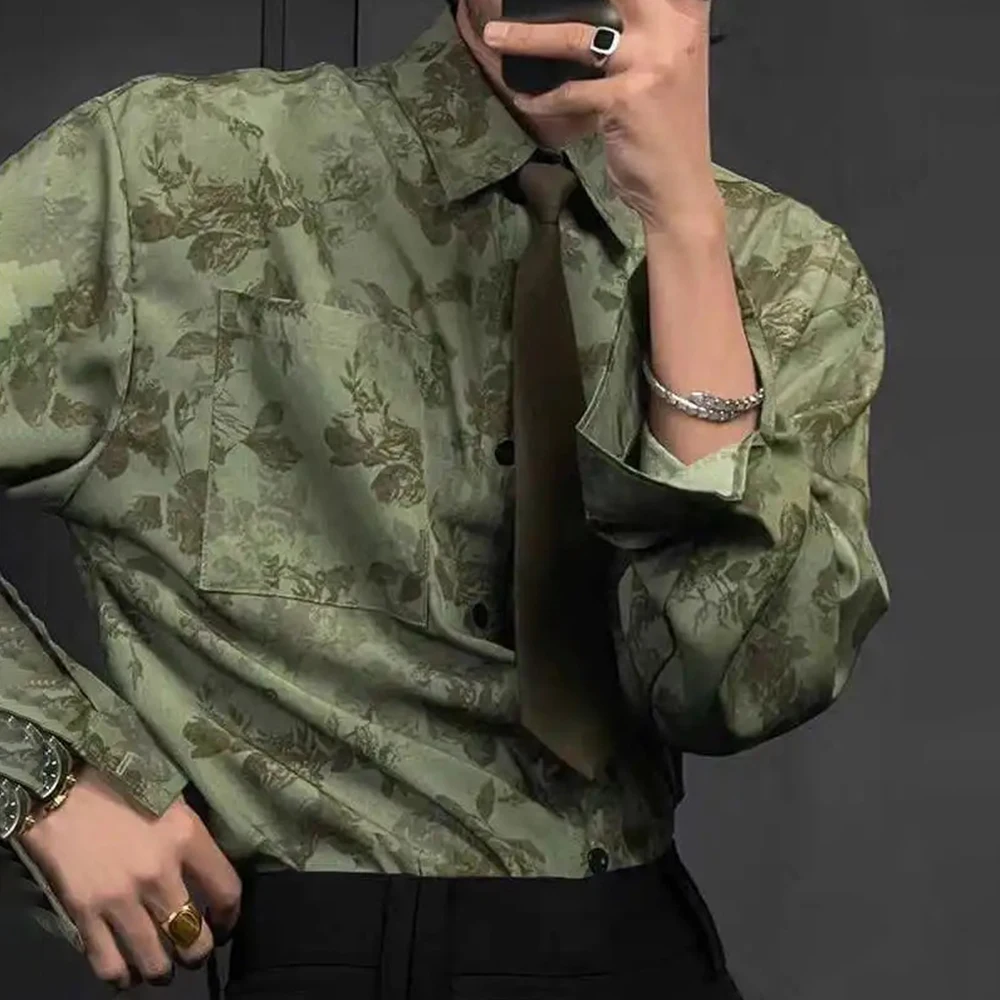 Advbridge Mens Shirt Floral Mature Style Shirt American Retro Niche Nightclub Performance Temperament Long-Sleeve Top Men'S Clothing 2024
