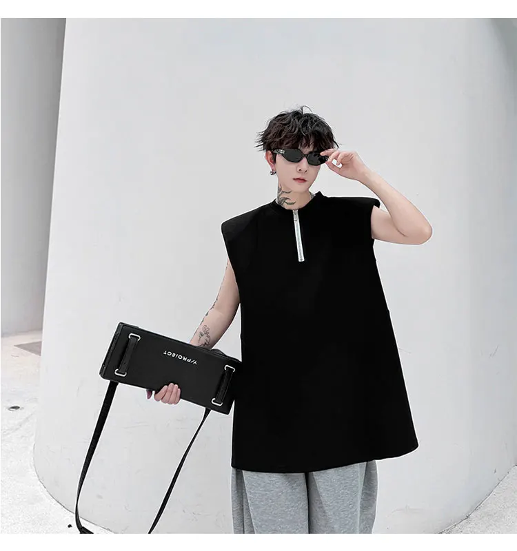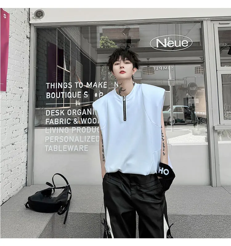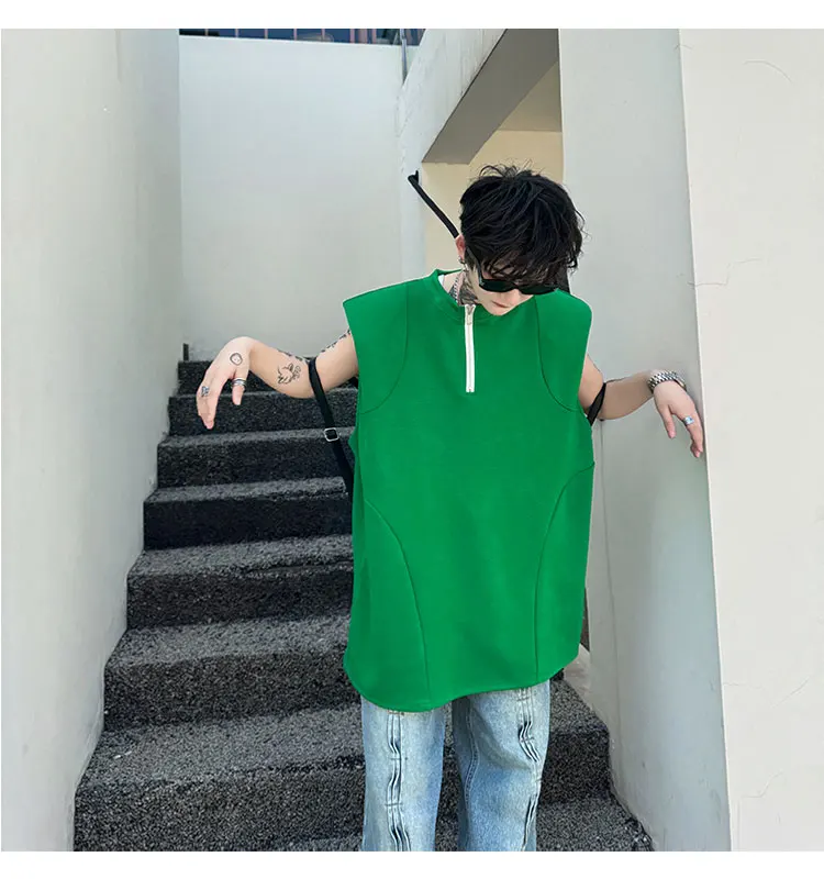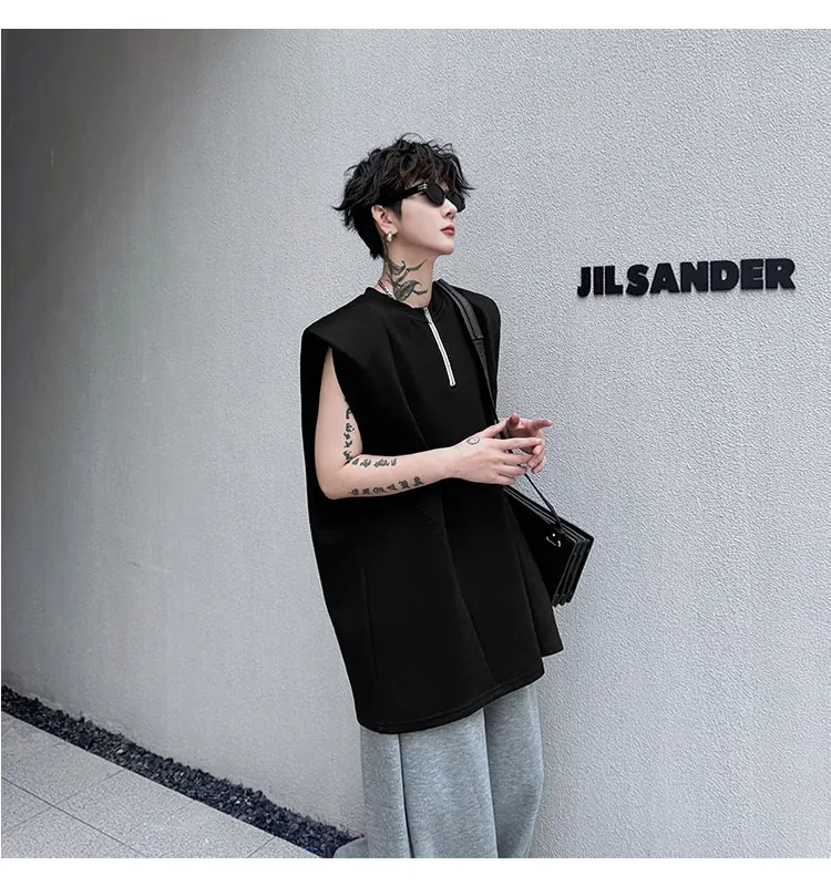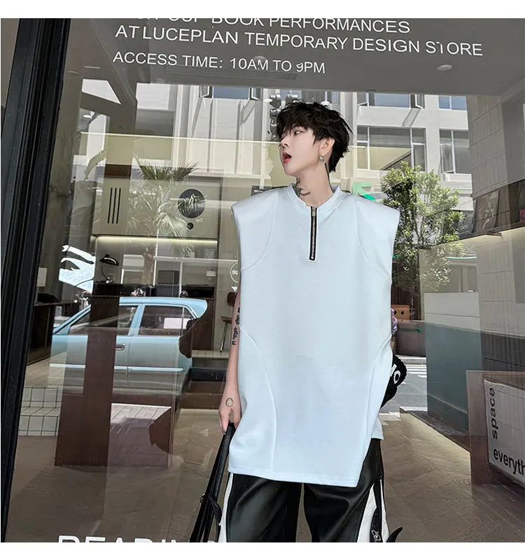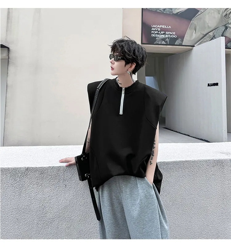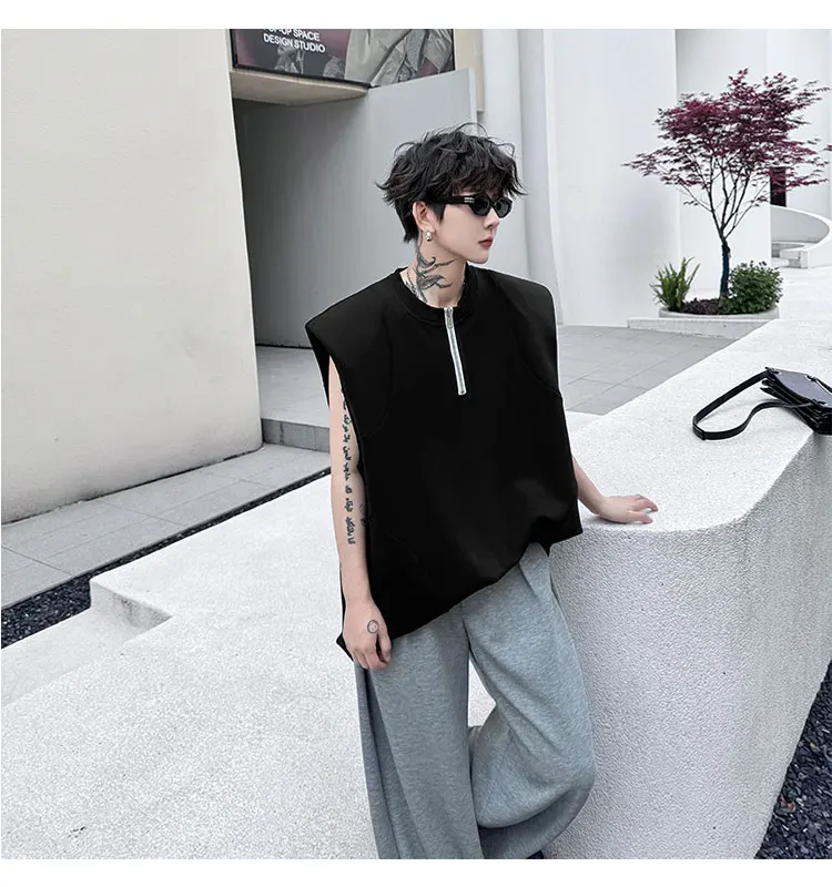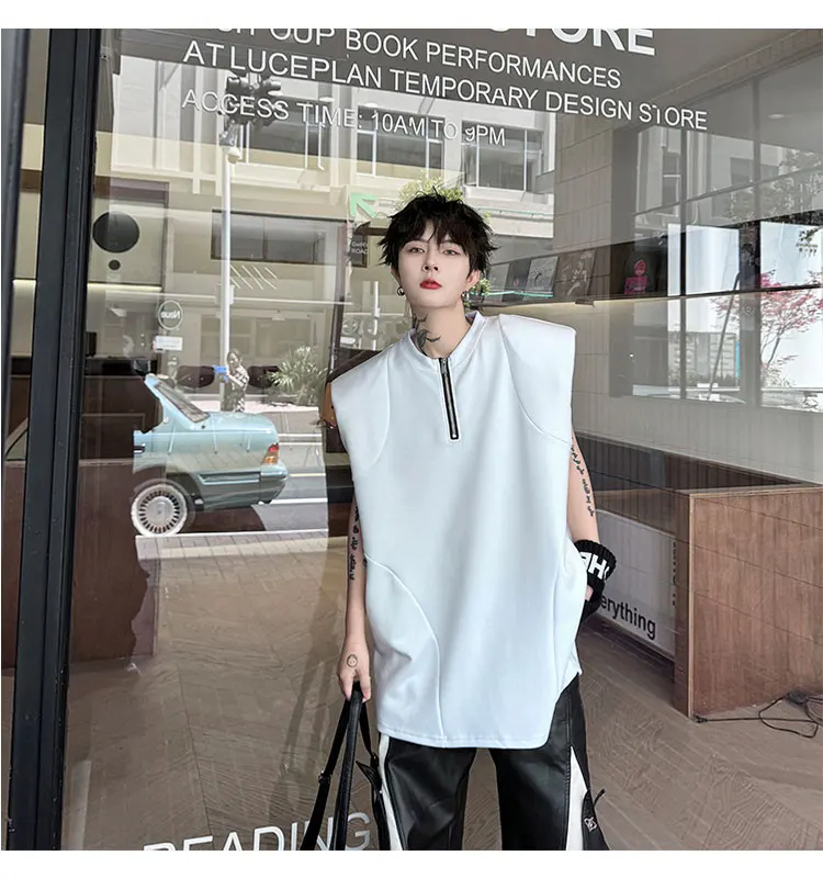 Advbridge Men's Tank Top Zipper Structure Design Loose Round Neck 2024 Summer New Fashion Solid Color Versatile Male Vest
