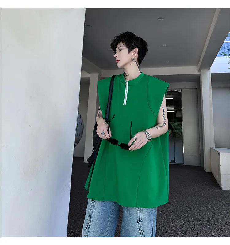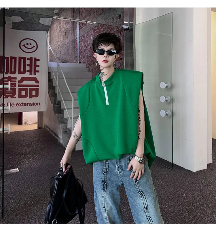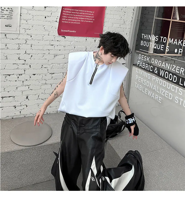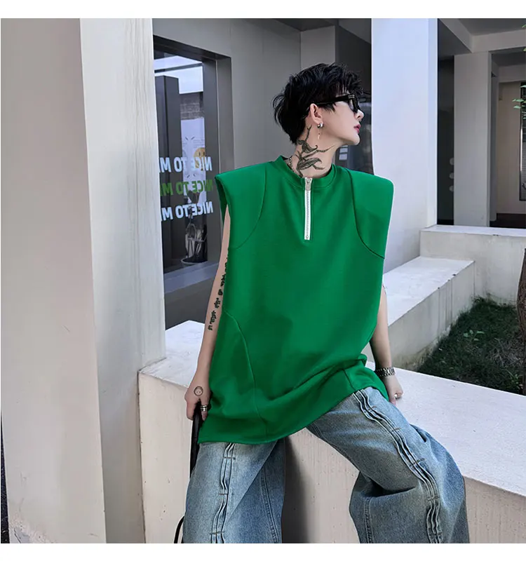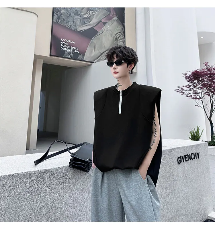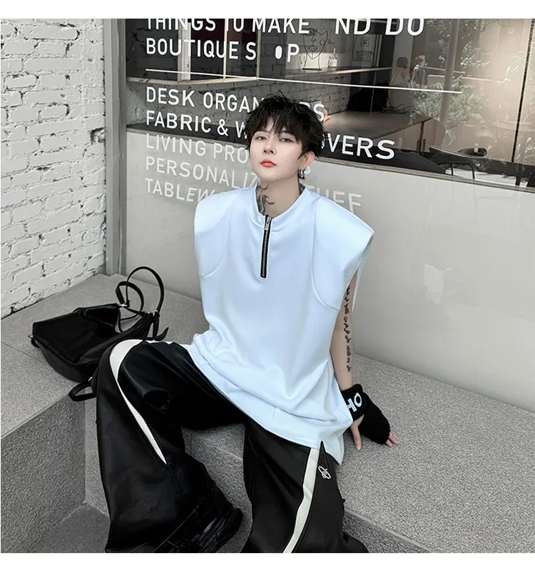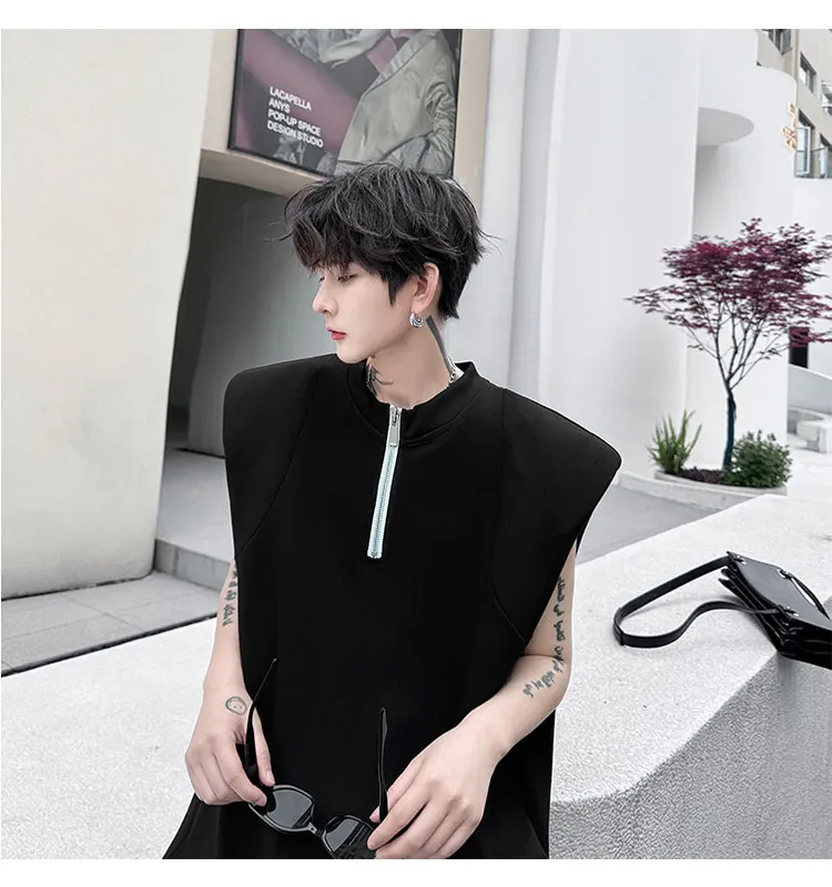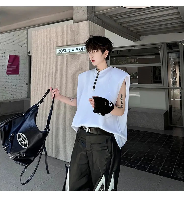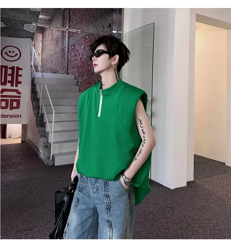 Advbridge Men's Tank Top Zipper Structure Design Loose Round Neck 2024 Summer New Fashion Solid Color Versatile Male Vest