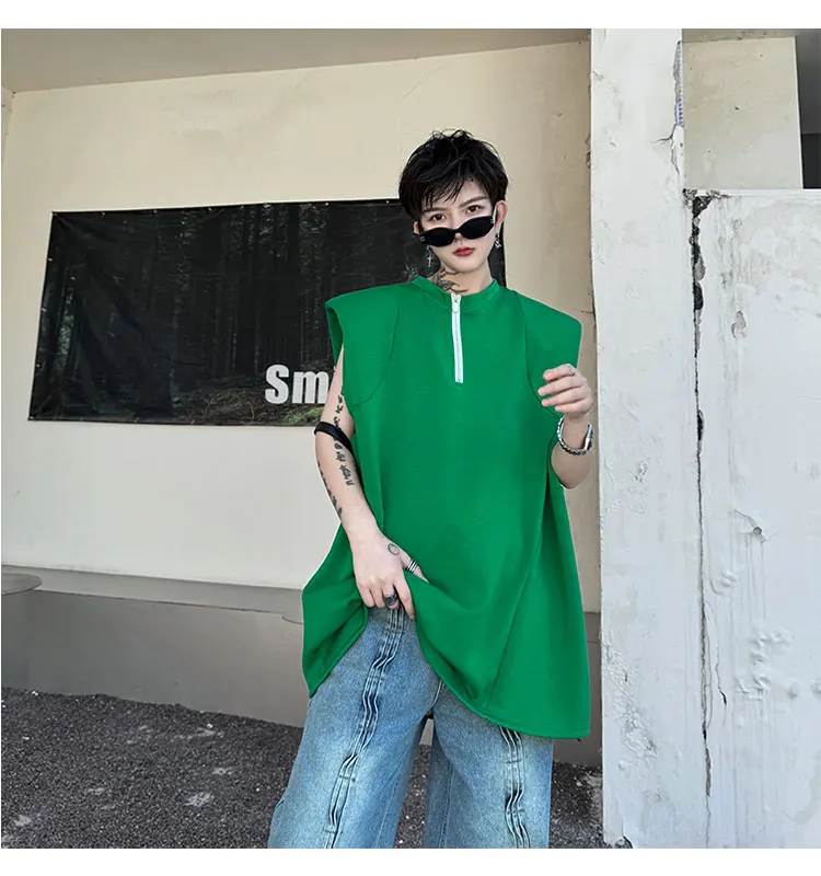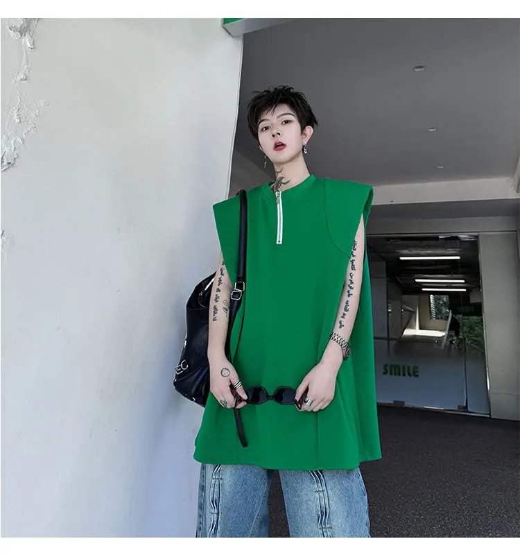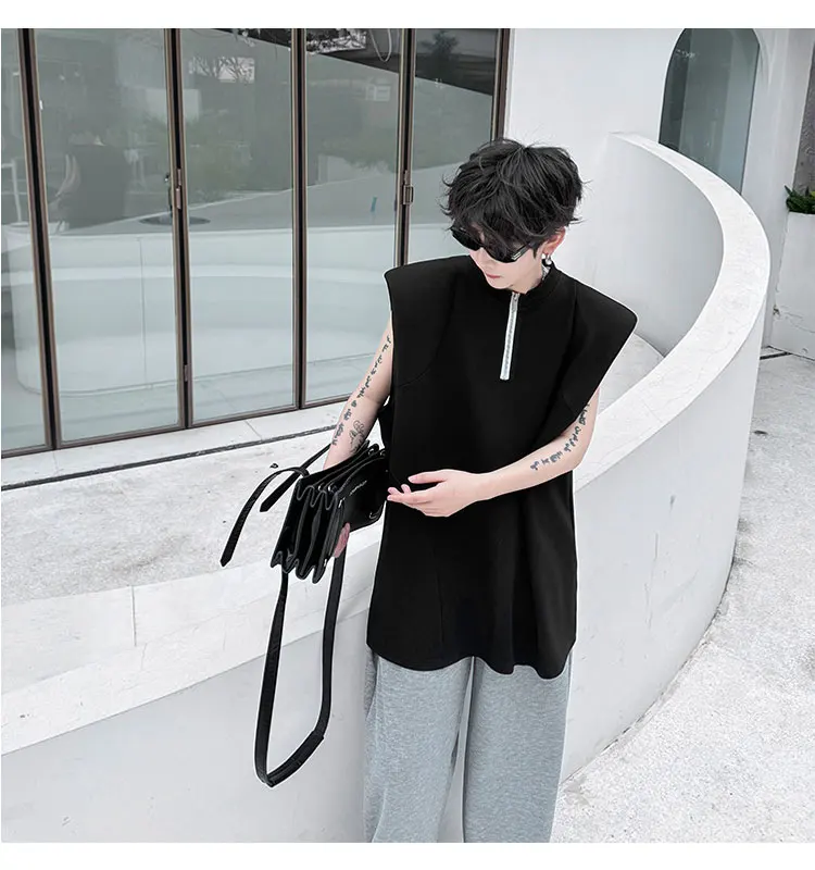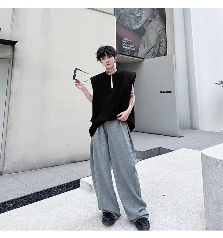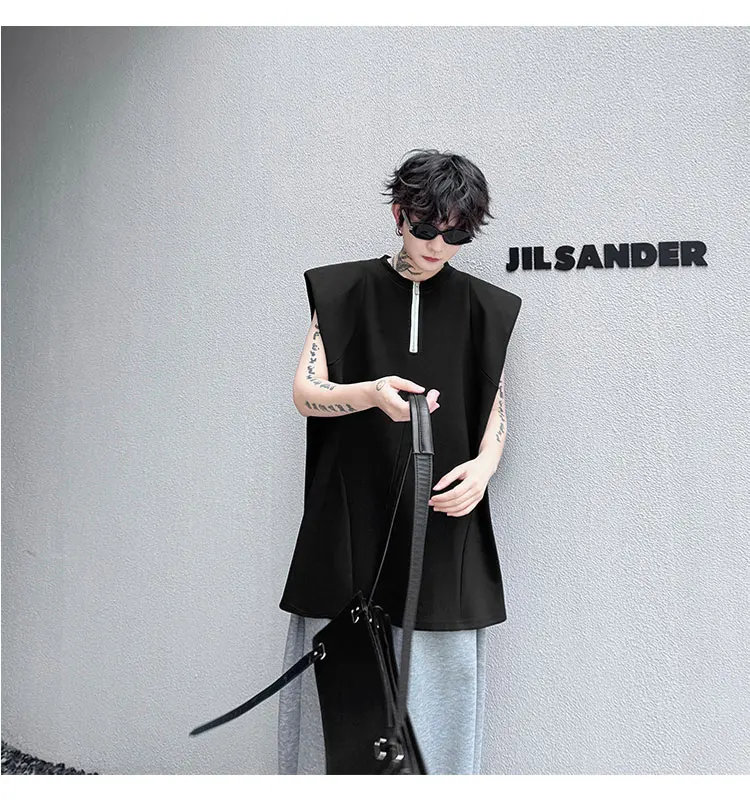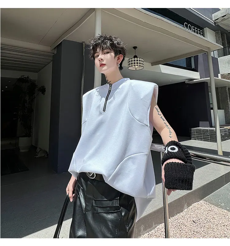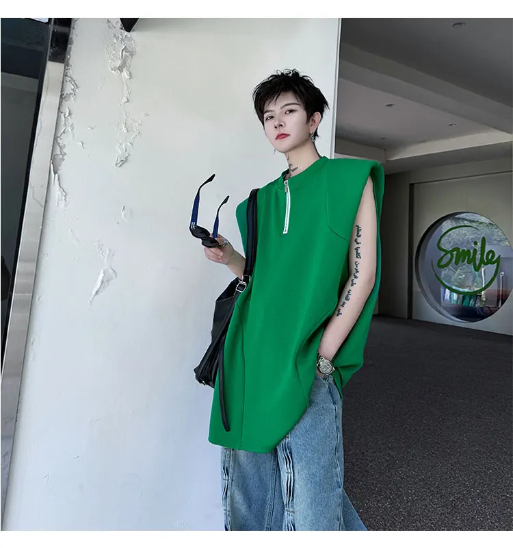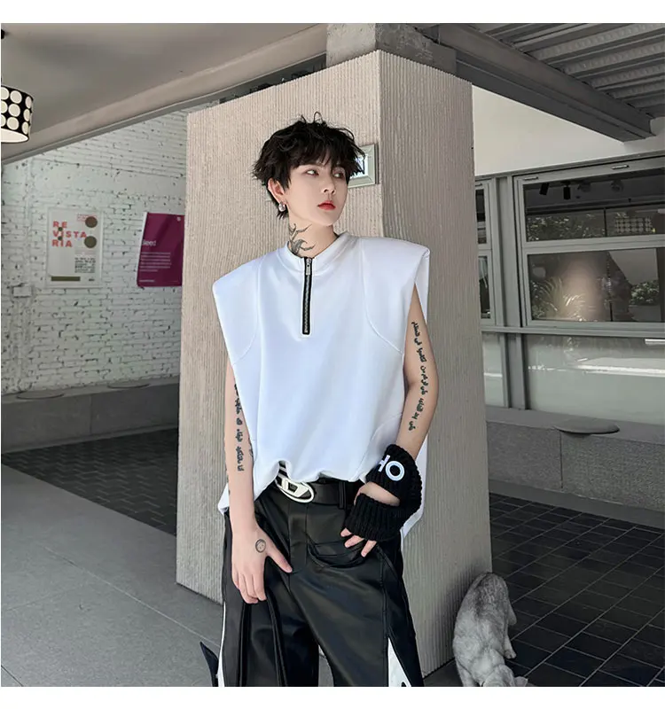 Advbridge Men's Tank Top Zipper Structure Design Loose Round Neck 2024 Summer New Fashion Solid Color Versatile Male Vest