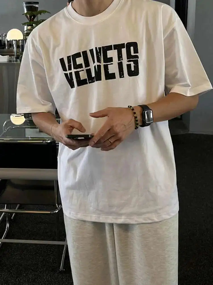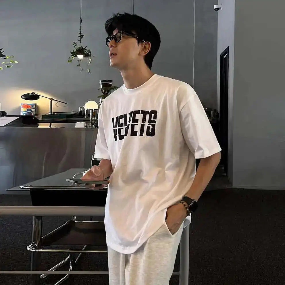ADVBRIDGE - Men's Wear T-shirts Short Sleeve 2025 Summer Letter Print Design Male Round Collar Cotton T-shirt Pullover Tops