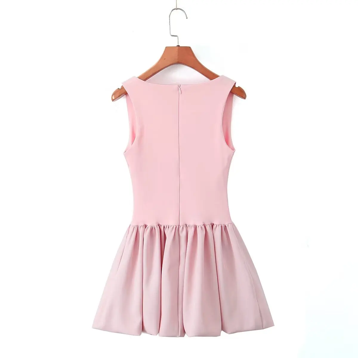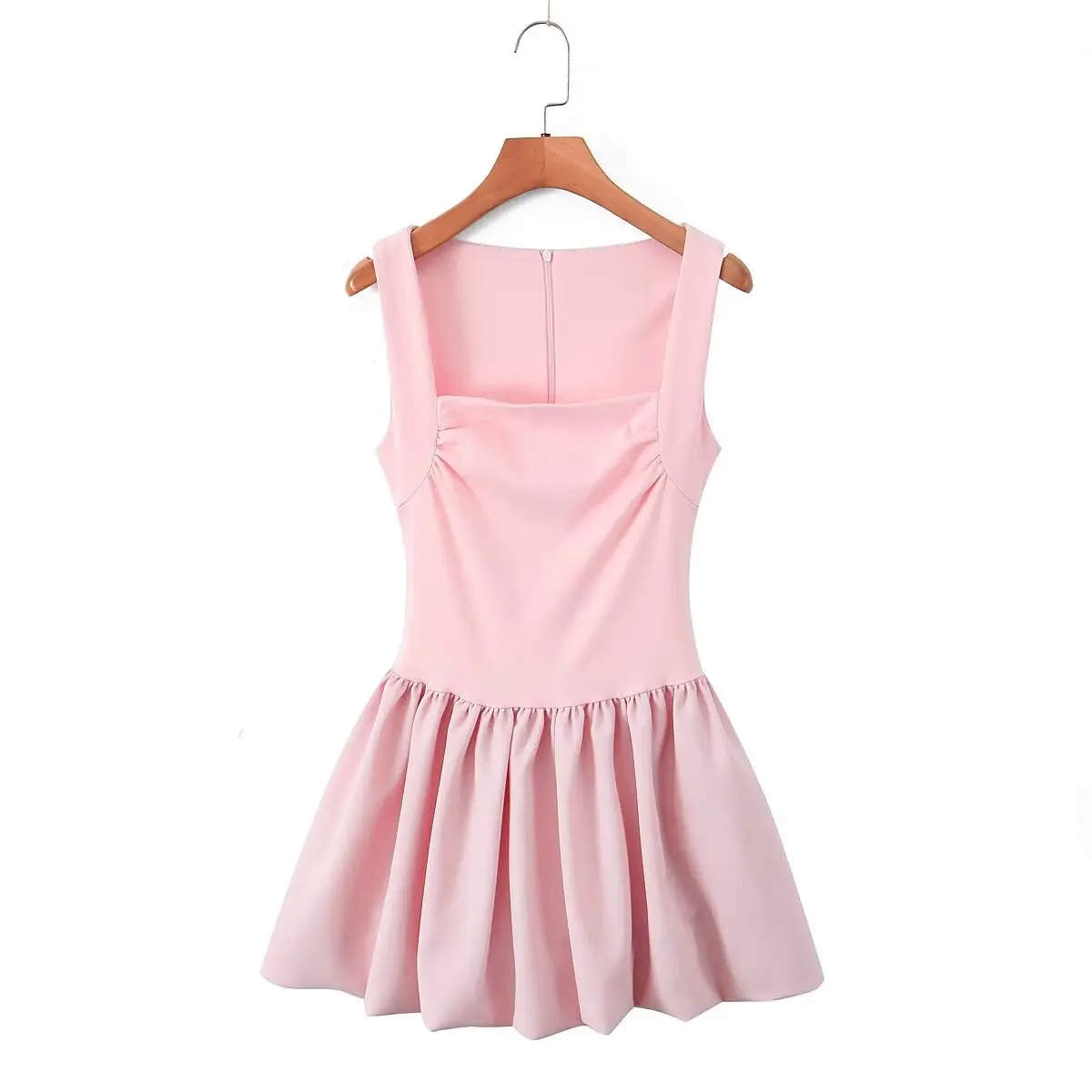 Pretty Girl Slim Pink Party Mini Dress For Women Elegant Square Neck Sleeveless Fit
