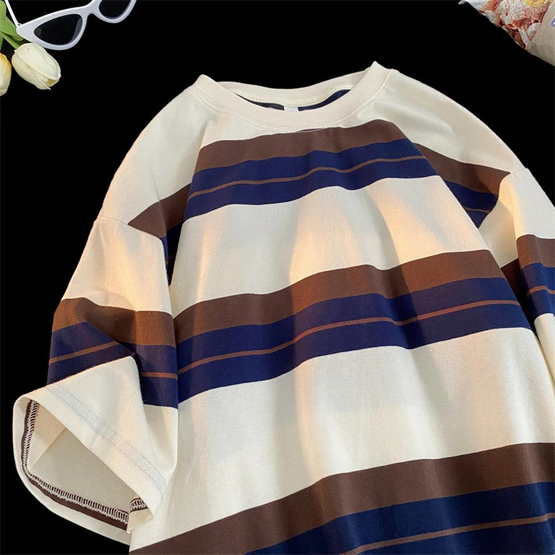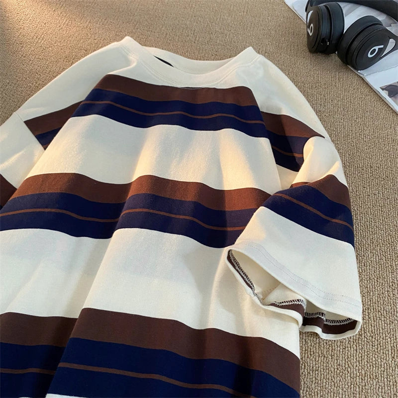 ADVBRIDGE - New Arrival Flower Festival T Shirt Men Striped Fashion O-Neck Tshirts Summer Cotton Tops Loose Street Hip Hop T-Shirts Q100