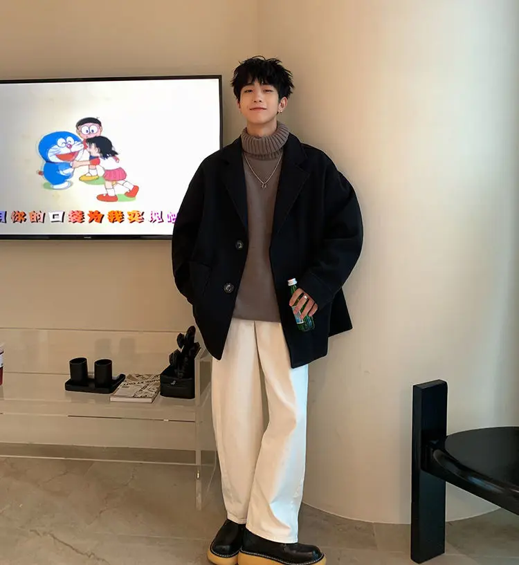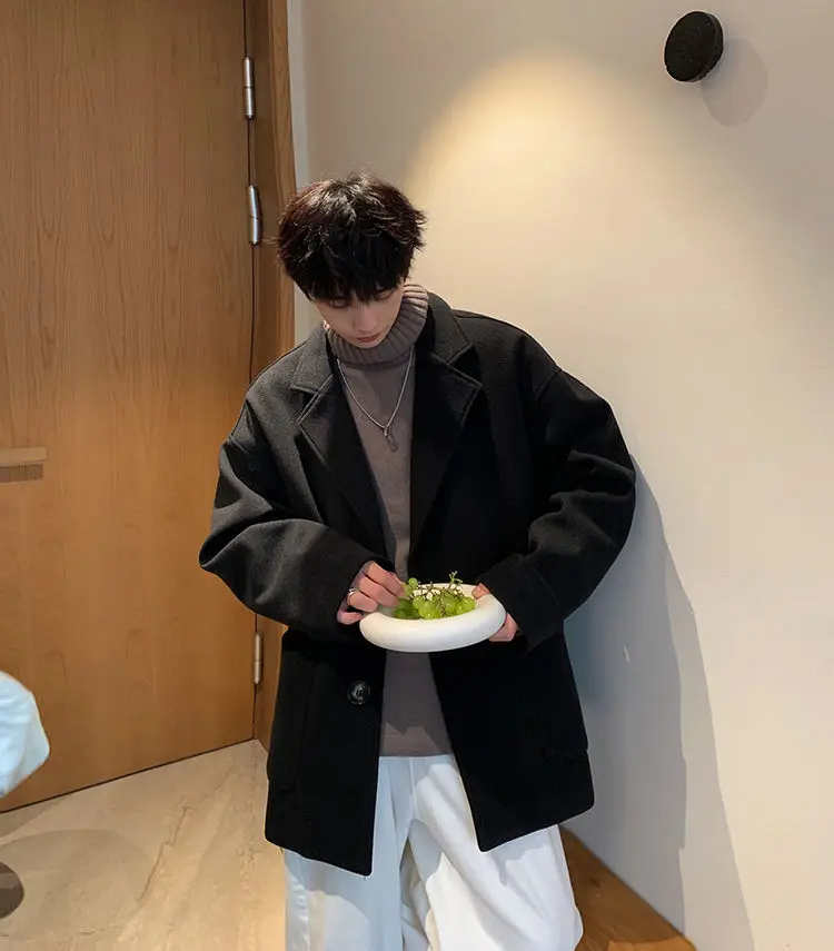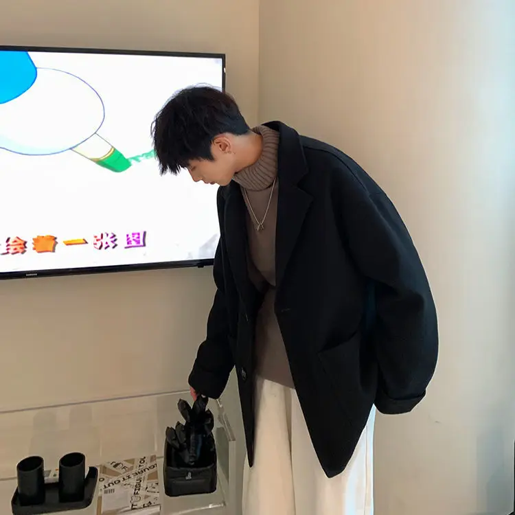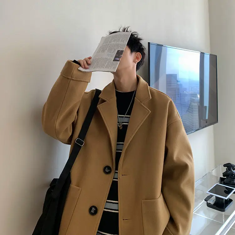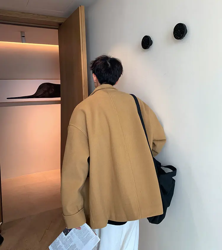 Advbridge New Men Solid Color Jackets Overcoats Male Wool Blend Coat Outwear Casual Loose Thicker Tops High Quality Steetwear L164