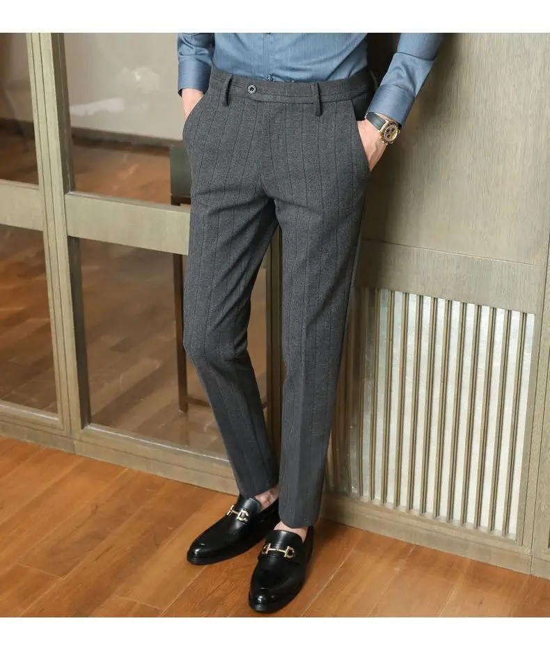 ADVBRIDGE New Men's Autumn Winter Striped Business Casual Pants Male Slim Fit Suit Pants Pants Men High Waist Dress Trousers H253