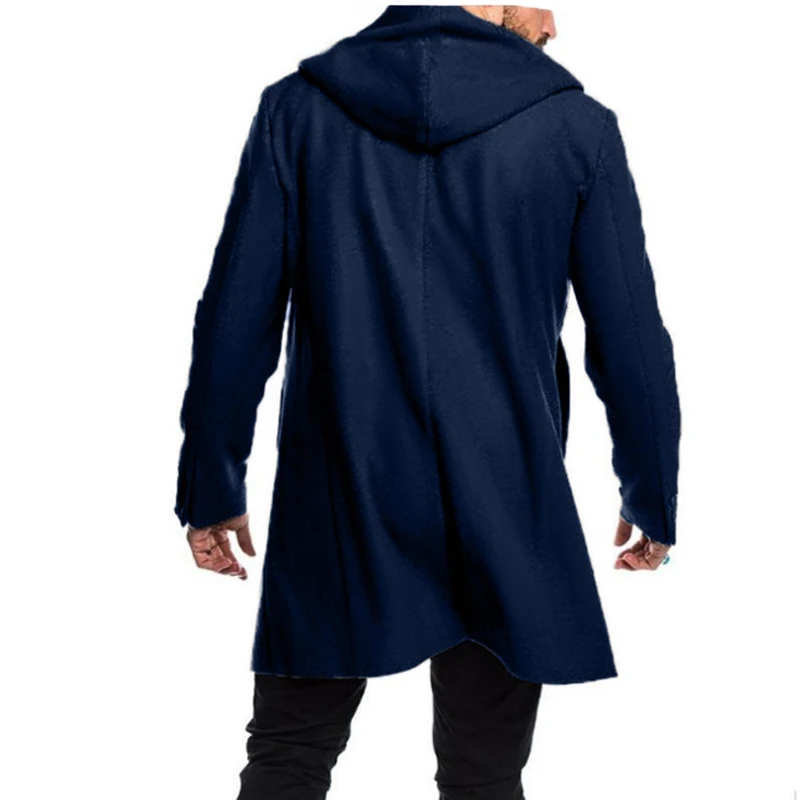 Advbridge New Men's Long Hooded Casual Coat Horn Buckle Fashion Lapel Temperament Coat
