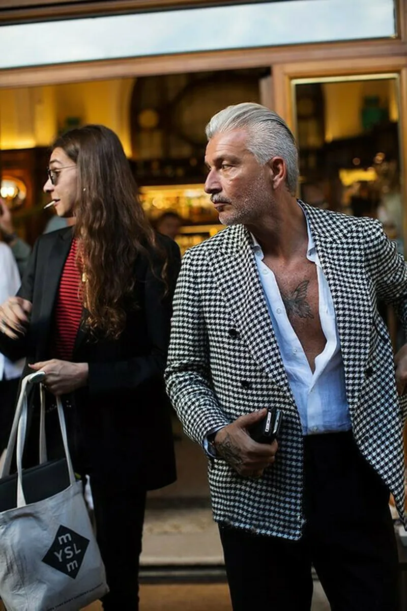 Advbridge New Men's Suits Jacket Fashion Houndstooth Notch Lapel One Coat Slim Fit Groom Tuxedos Only Blazer For Wedding Business