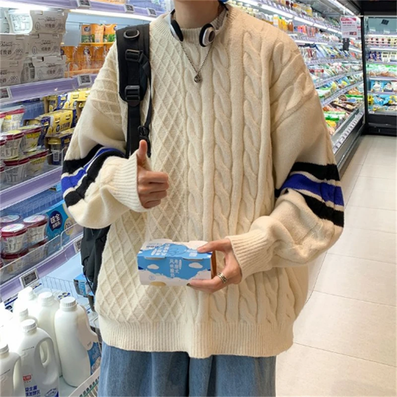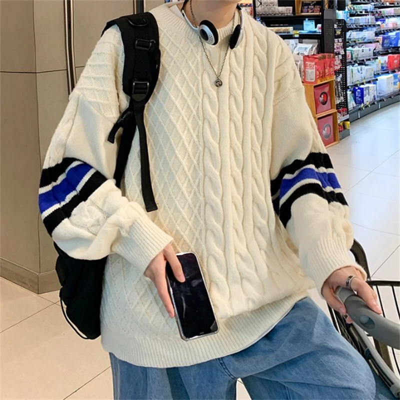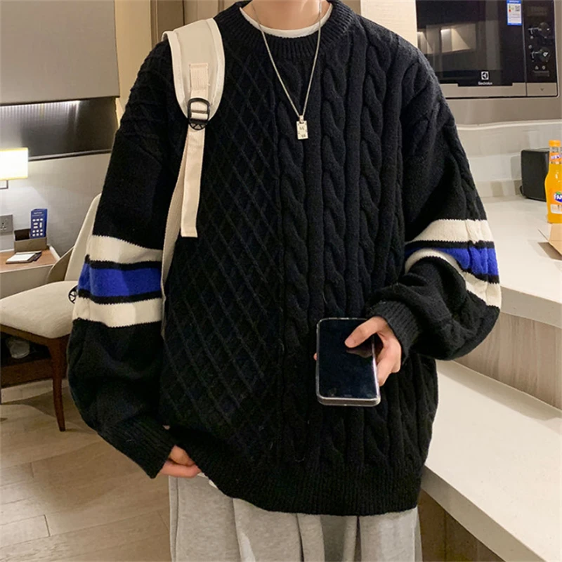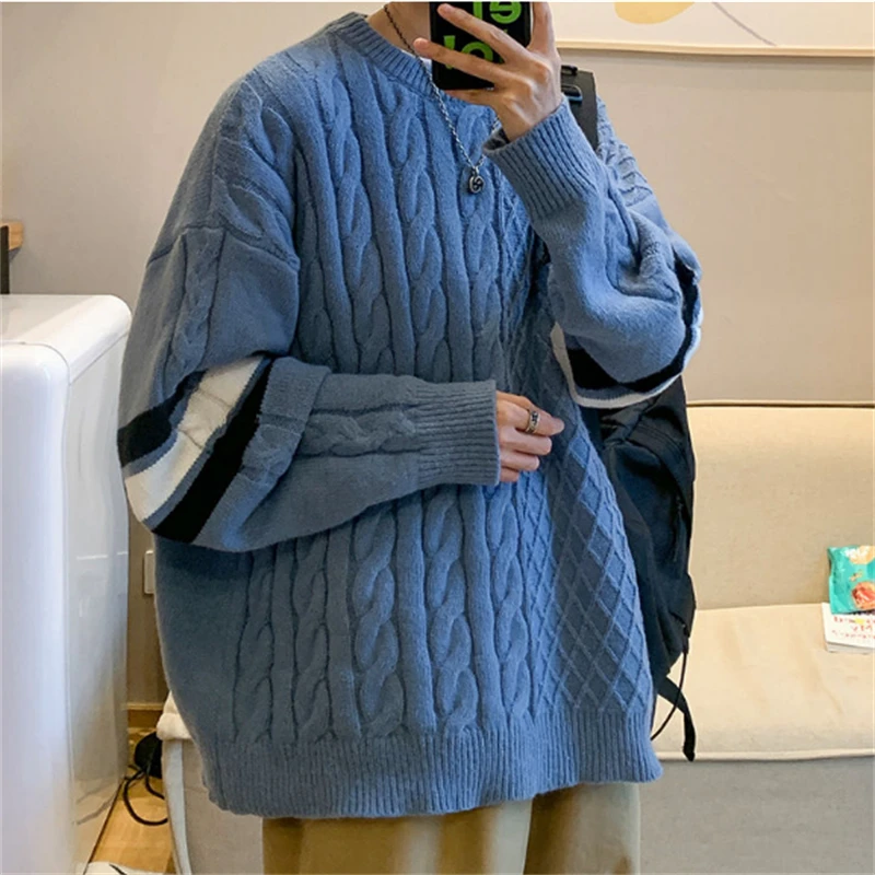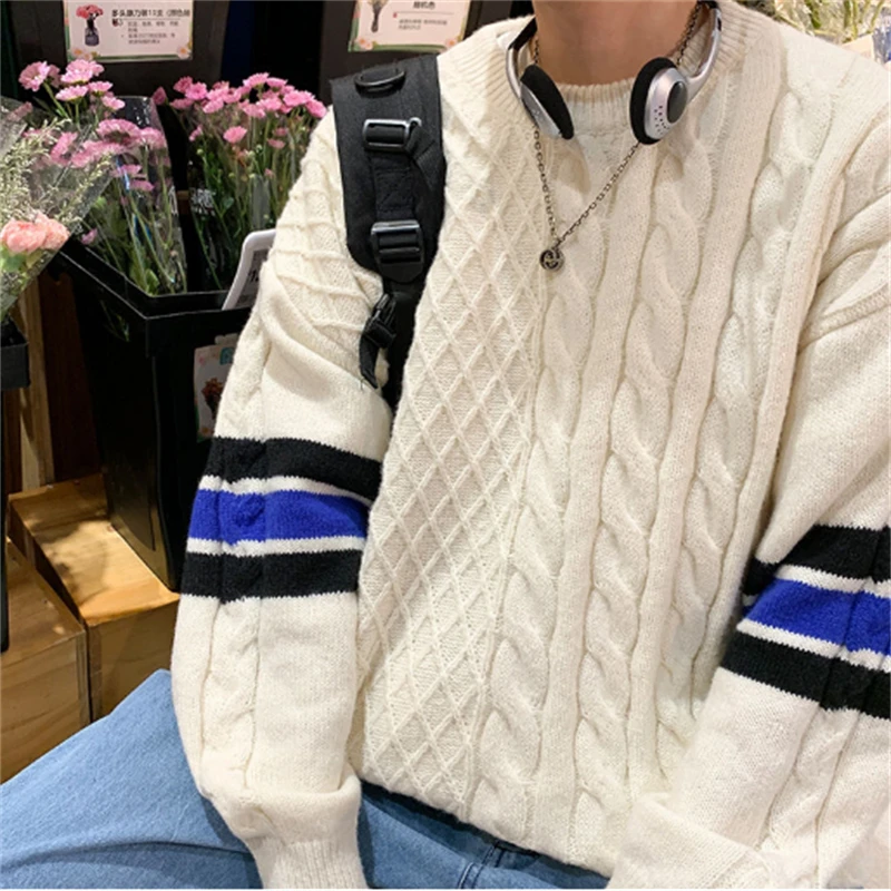 Advbridge New Spring Autumn Men's O-neck Sweaters Fashion Patchwork Youth Chic Pullover Loose Tops Male Knitted Sweater