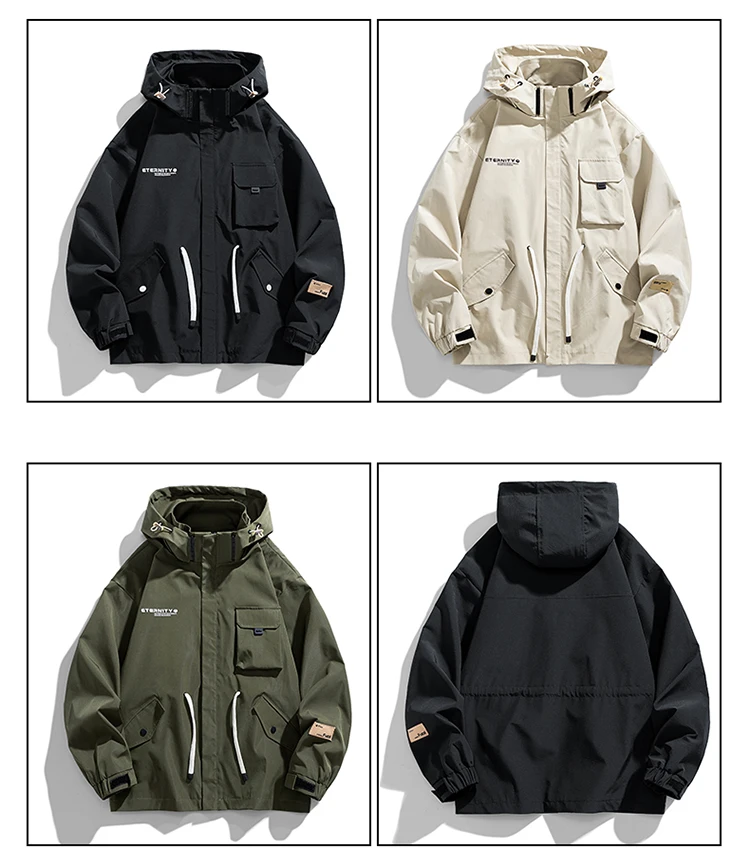 Advbridge New Spring Men's Jacket Plus Size Multi-Pockets Workwear Hooded Windbreaker Man Loose Casual Zipper Coats 6XL 7XL 8XL 9XL