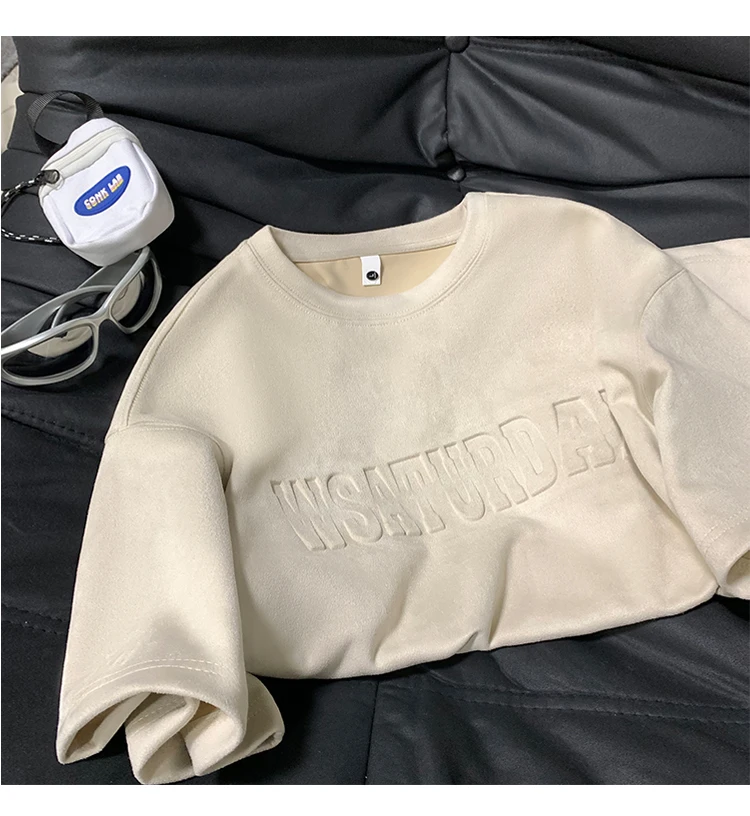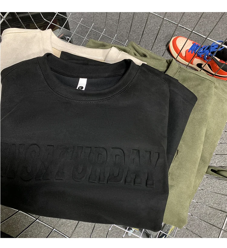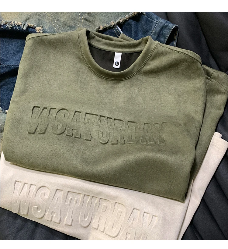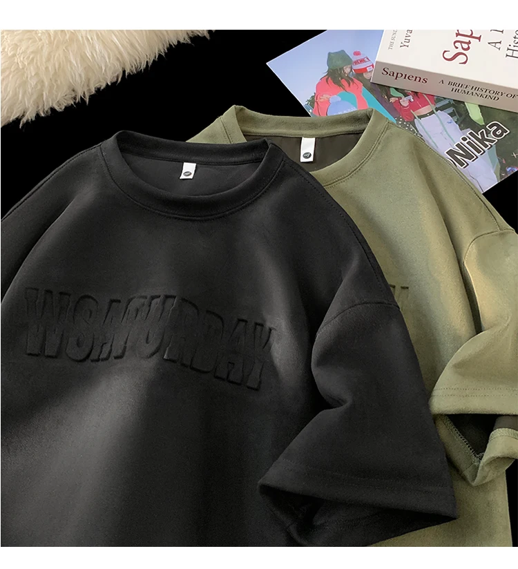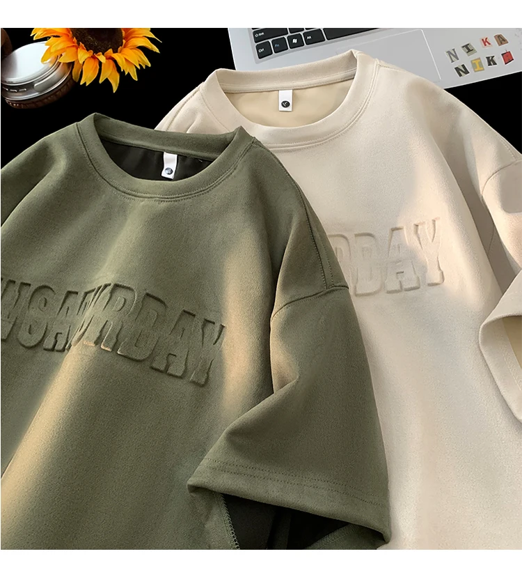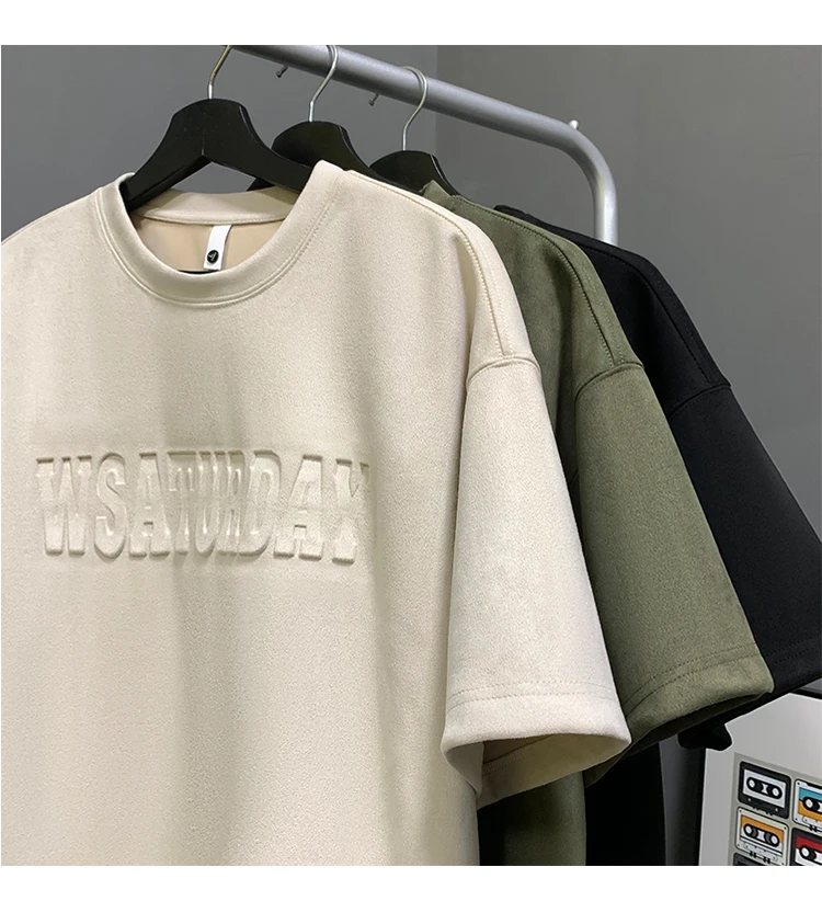 Advbridge New suede T-shirt Men Basic Stereo Letter Solid Color Tshirts Unisex Short Sleeve Tops 2024 Summer Leisure O-neck T-Shirt Male