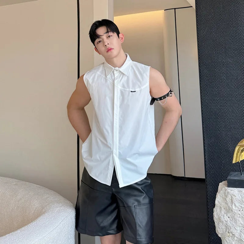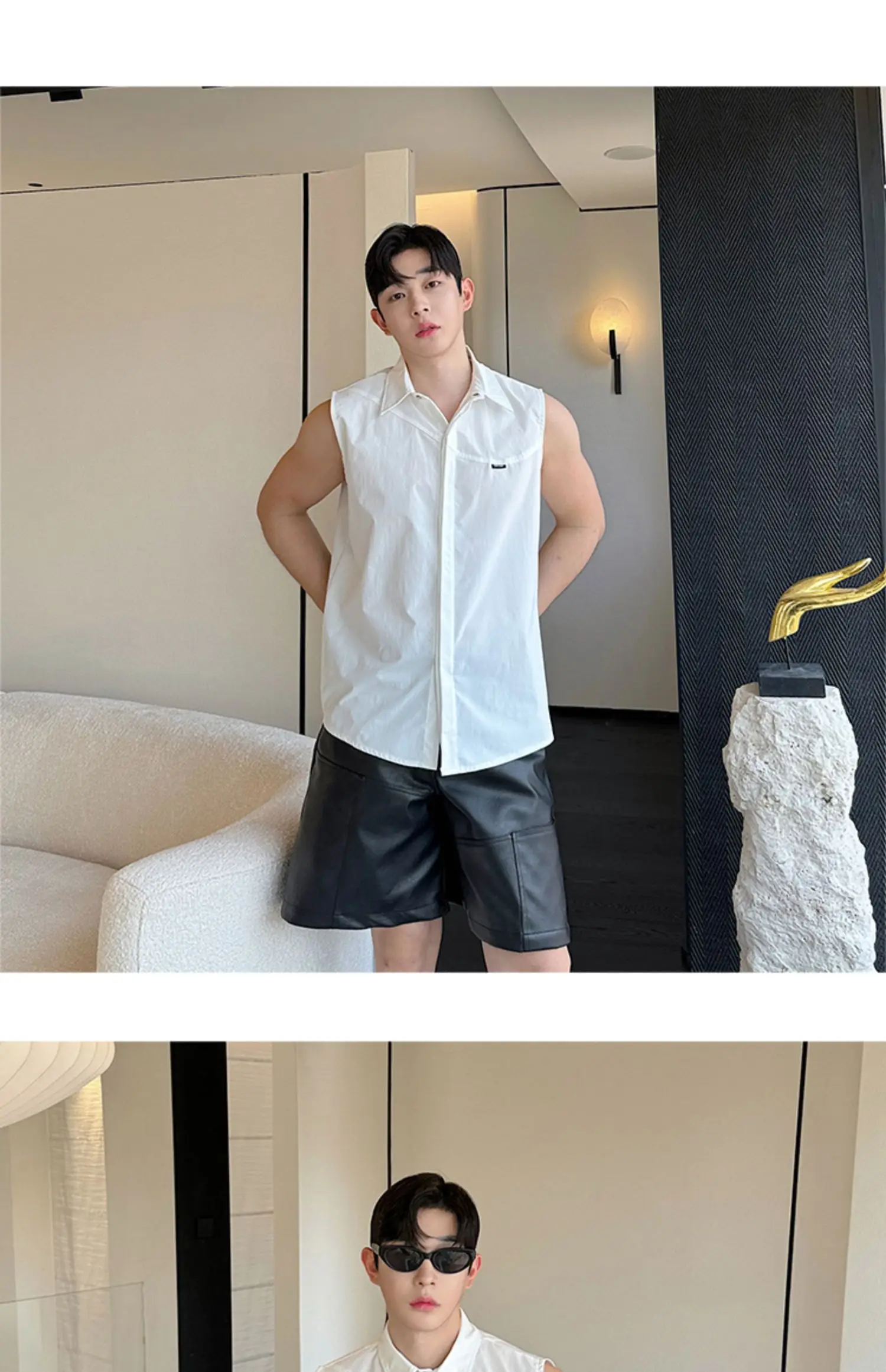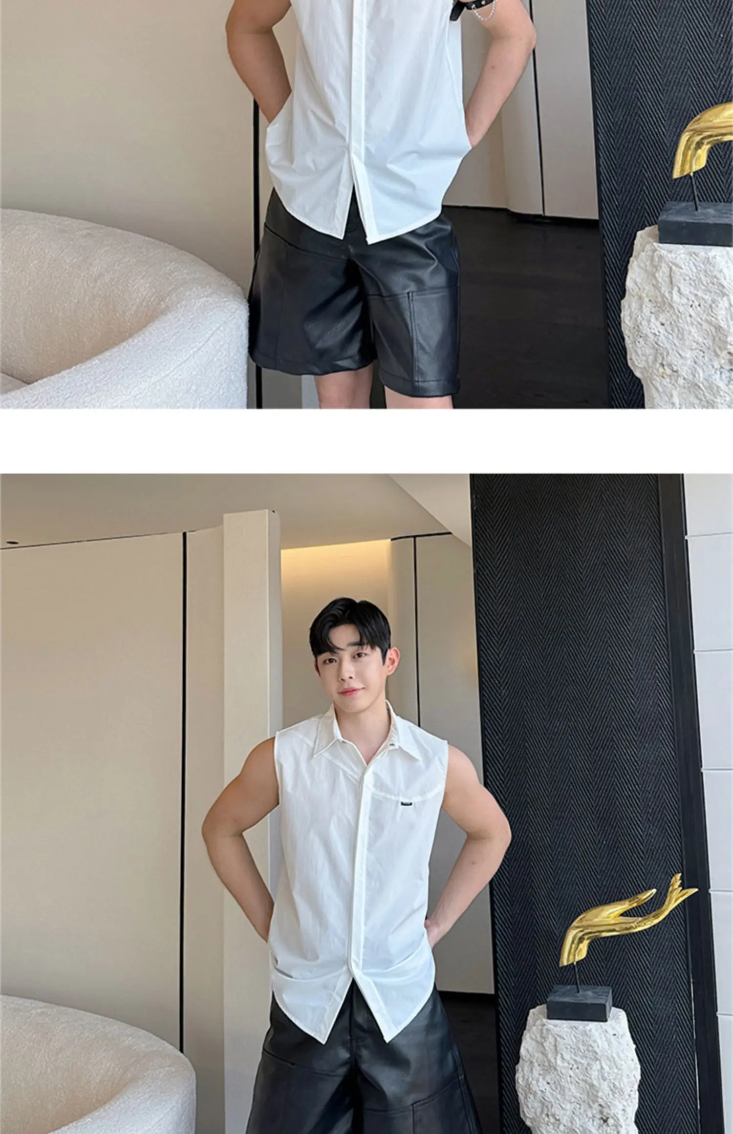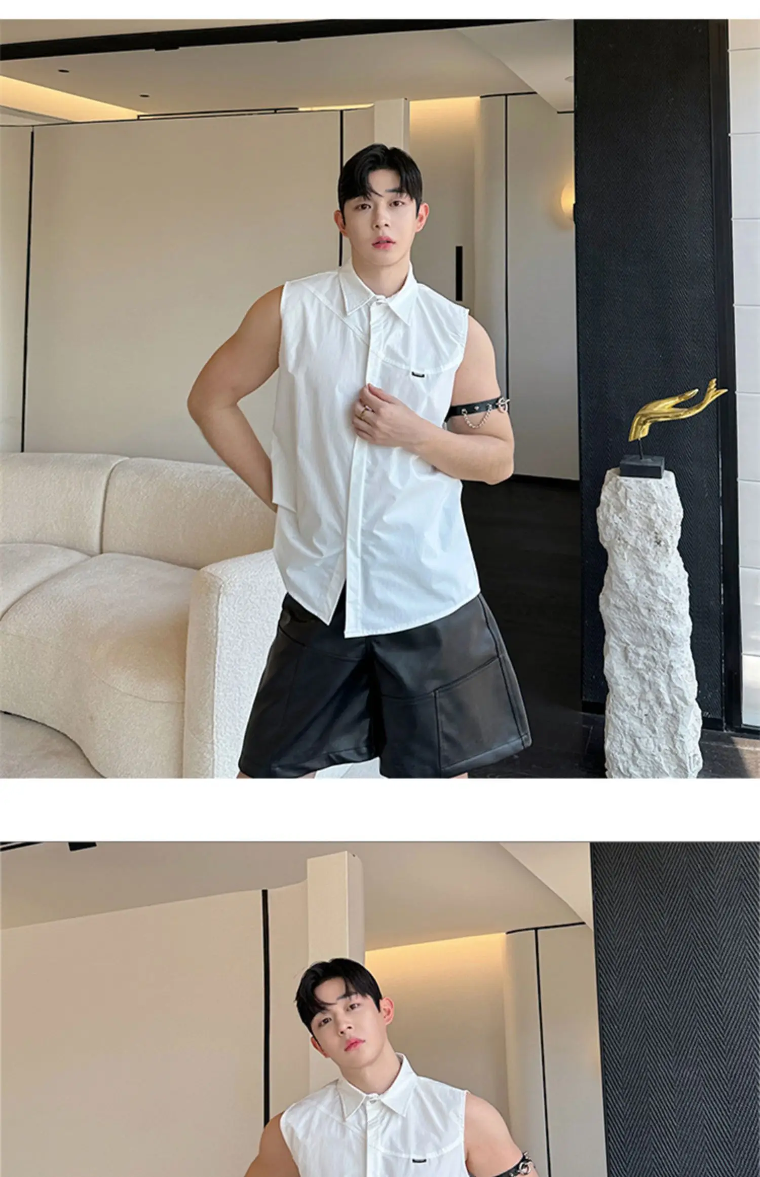 Advbridge New Summer Men's Shirts Loose Turn-down Collar Sleeveless Simple Solid Color Male Tops Casual Clothing Chic 2024