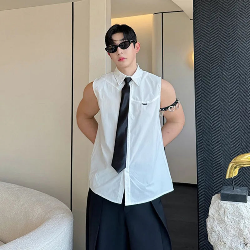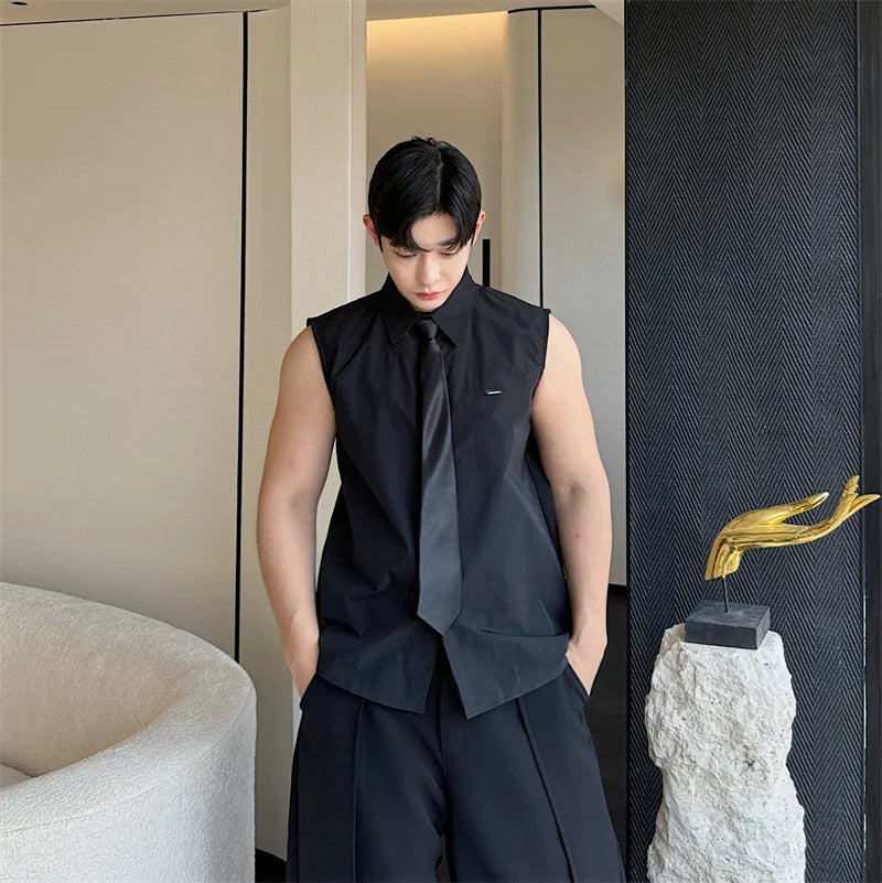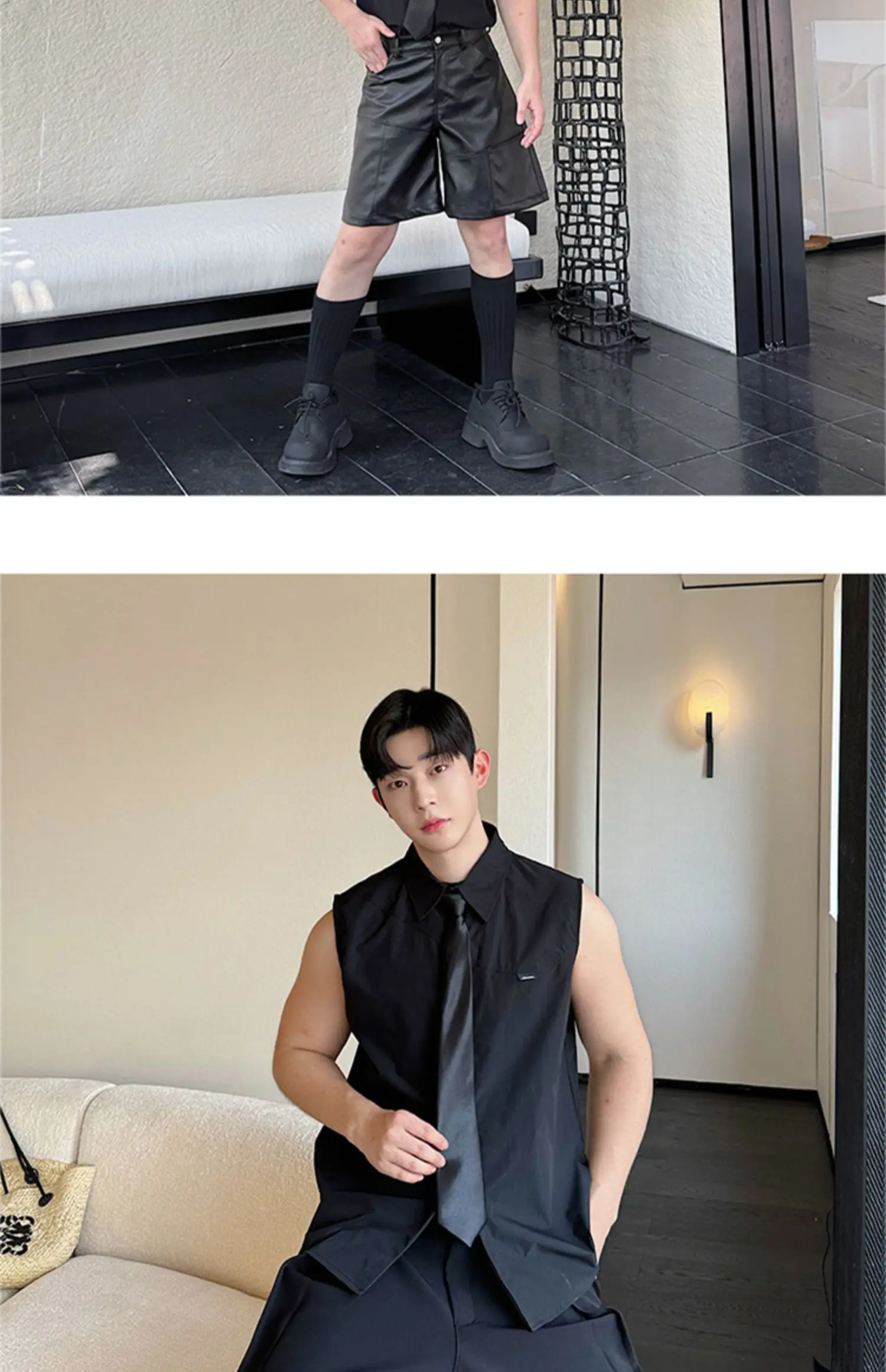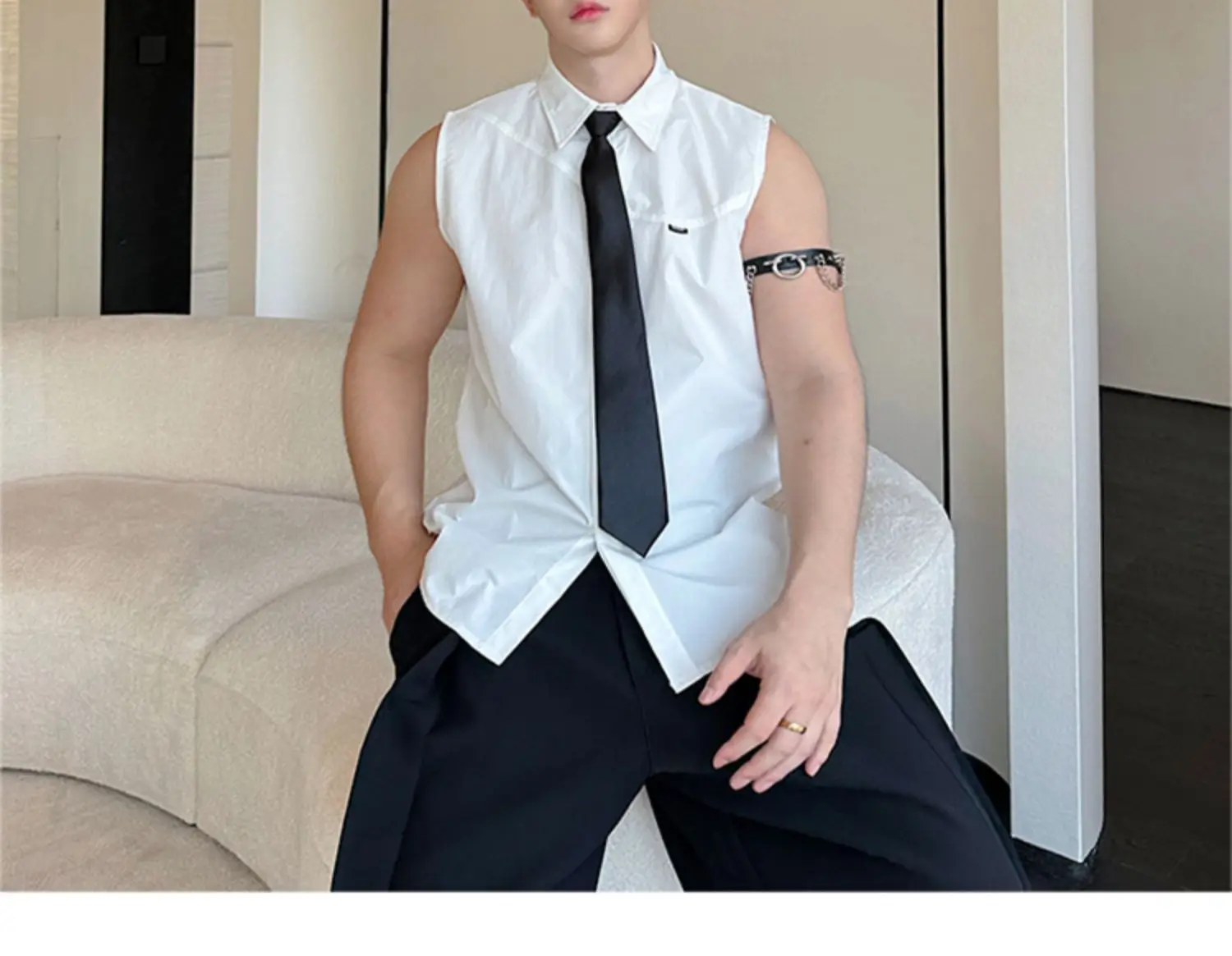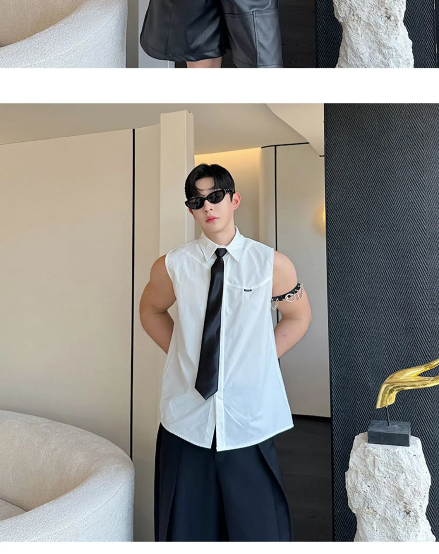 Advbridge New Summer Men's Shirts Loose Turn-down Collar Sleeveless Simple Solid Color Male Tops Casual Clothing Chic 2024